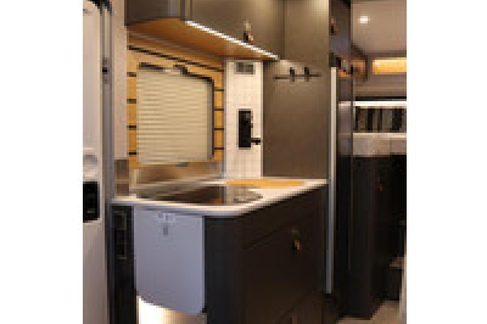 Sportieve designelementen en exclusieve Borbet-velgen met HYMER-logo verschaffen de HYMER ML-T Xperience een dynamisch en stijlvol voorkomen. - Zwarte luifel