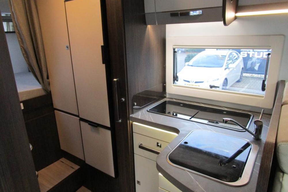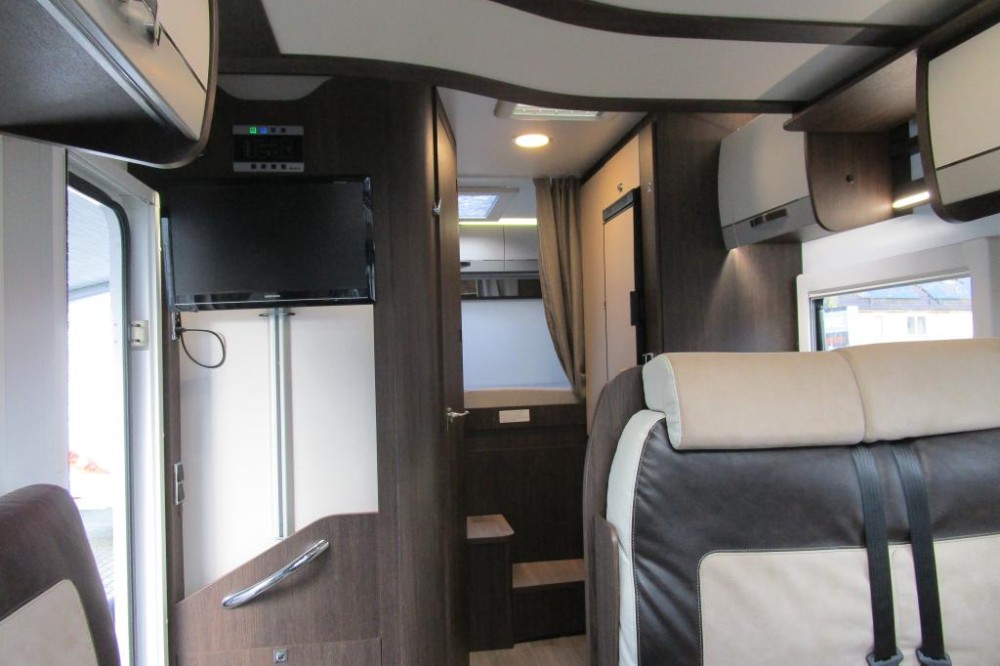 Voorzieningen: Airco (motor), achteruitrij camera, radio, DAB/FM, USB, lederen stuur en bediening, luxe bekleding, 5 gordels, luxe draaibare stoelen, plicee verduistering voorramen, luxe instapdeur + raam, grote koelkast met vriezer en lade, 3-pits gasstel, Webasto verwarming, Truma boiler, TV, grote XXL garage (beide zijden van de camper toegang d.m.v. deur), dakventilator, zonnepaneel, fietsendrager, luifel.