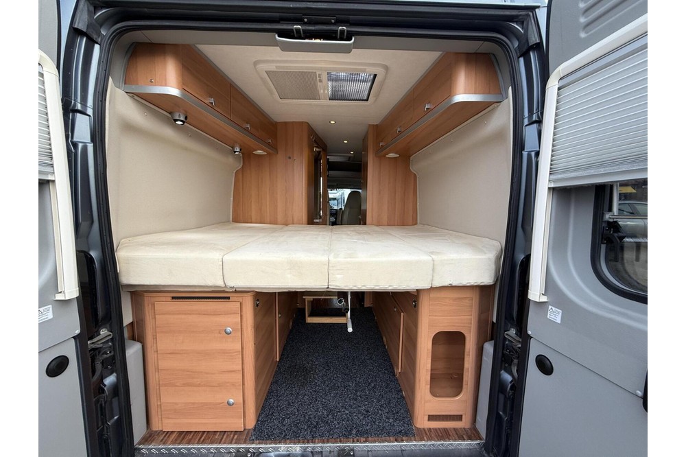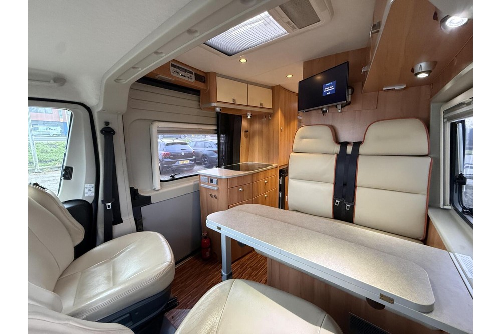 Deze toonaangevende en zeer veelzijdige professionele bestelwagenconversie van Hymer Group overtreft alle verwachtingen met een indrukwekkende specificatielijst en een bouwkwaliteit die door weinigen wordt geëvenaard. Gebaseerd op het Fiat Ducato-chassis met een 2300cc 130 pk motor en 6-versnellingsbak, maximaal gewicht van 3500 kg en totale lengte ongeveer 5,99 meter.