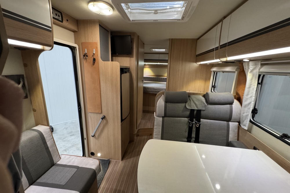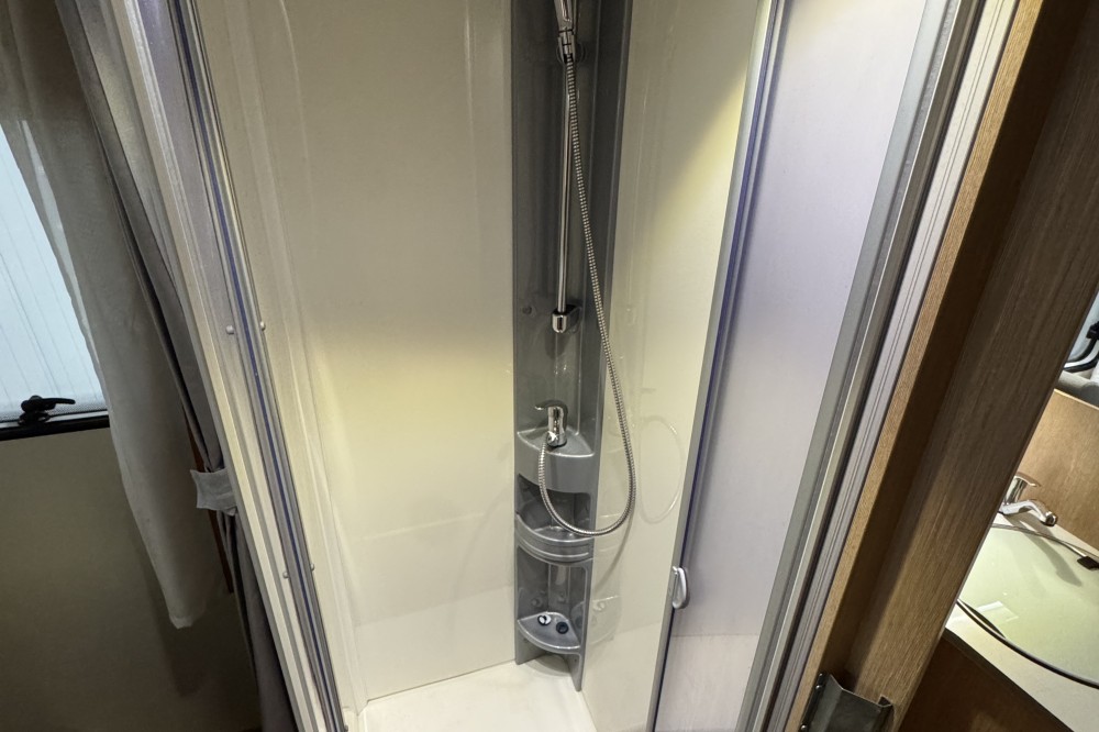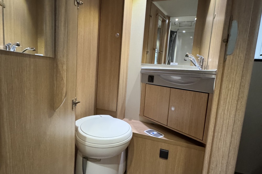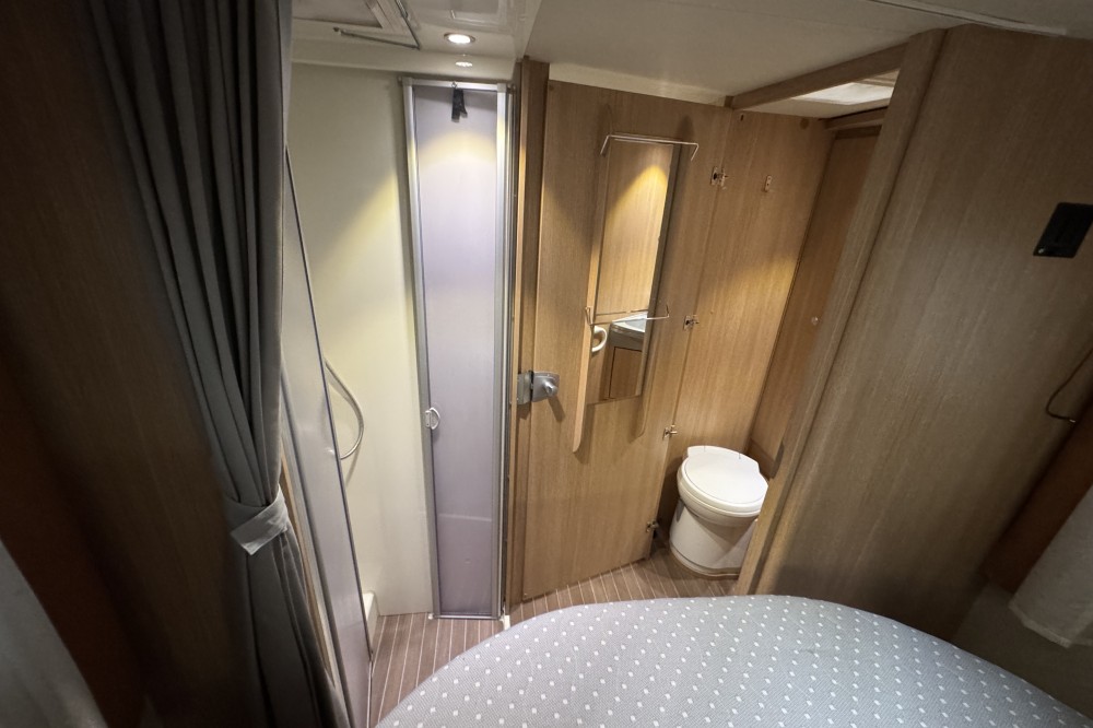 Dankzij de pocketveringmatrassen en lattenbodems op de bedden komt u rustig en comfortabel de nacht door. In de comfortabele badkamer van deze camper vindt u behalve een wastafel ook een ingebouwd cassettetoilet. Naast het slaapgedeelte bevindt zich ook de douchegelegenheid.