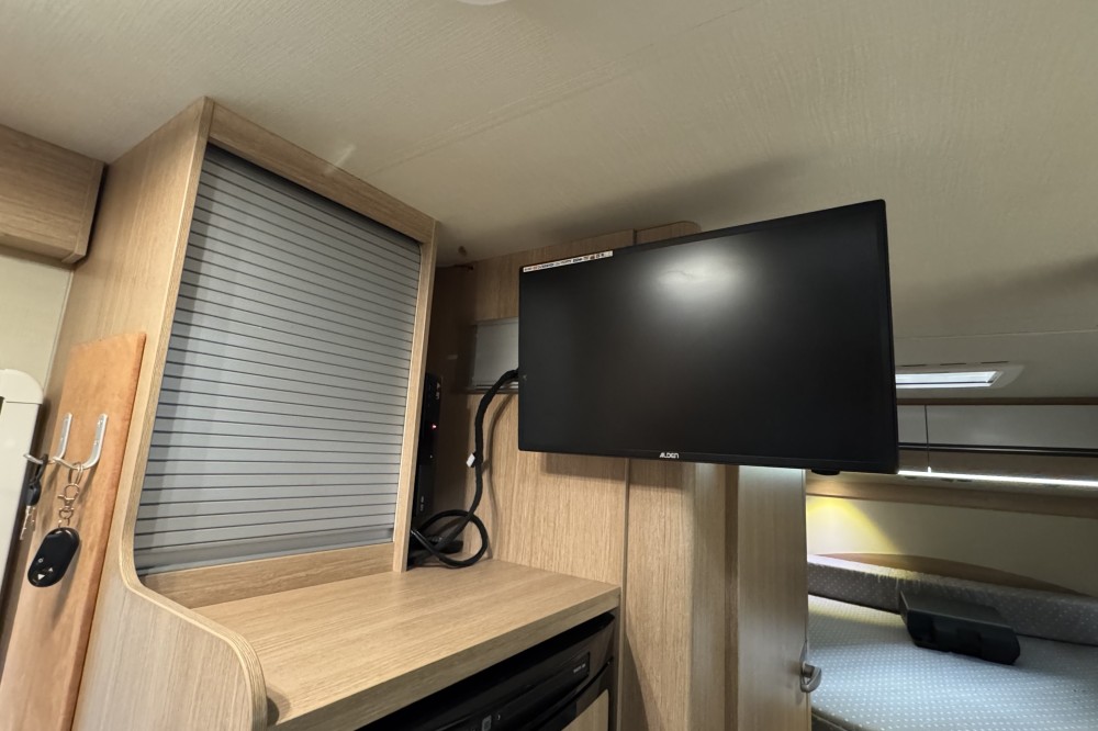 Met de ingebouwde audio-installatie en aanwezige televisie in deze camper, kunt u ook op vakantie naar uw favoriete muziek en programma's kijken. De camper is uitgerust met een vaste schotelantenne en decoder. De camper is uitgerust met een hordeur. Hierdoor houdt u insecten zoals muggen en vliegen buiten de camper. U bent beschermd tegen zon en regen door de snel uit te draaien Omnistore cassetteluifel die aan de camper is bevestigd.