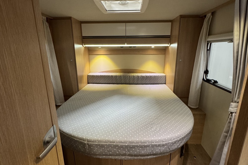 Het queensbed dat vrijstaat van de wanden geeft het gevoel van luxe en ruimte. De aparte bedden waarmee de camper is uitgerust bieden ruime slaapplekken aan 3 personen.