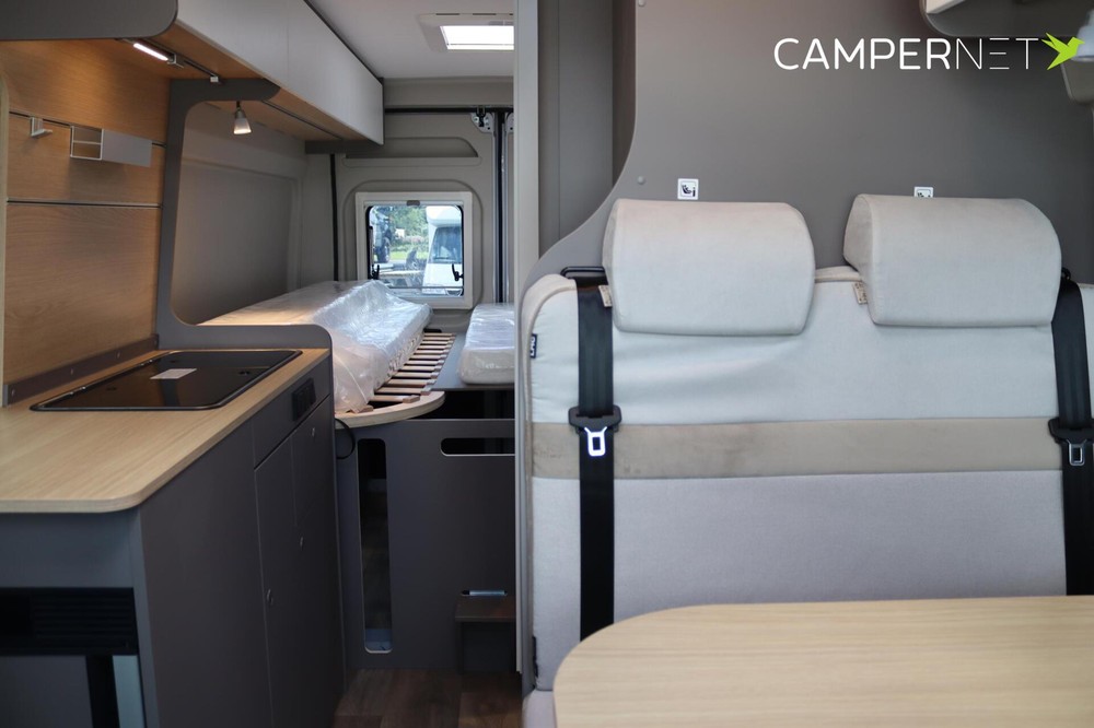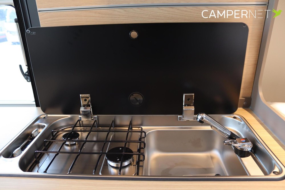 Met 3 mogelijke indelingen biedt de Innovan plaats aan 2 – 5 personen in een tweepersoons- of eenpersoonsbed en in het uitklapbare dak. Een bijzonder hoogtepunt in de keuken is de koelkast van 70 l met comfortabele toegang langs beide kanten. De kasten zonder handvat sluiten zacht en automatisch dankzij het softclose-systeem; antivingerafdruk-coating voorkomt lastige vlekken.