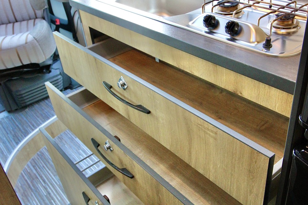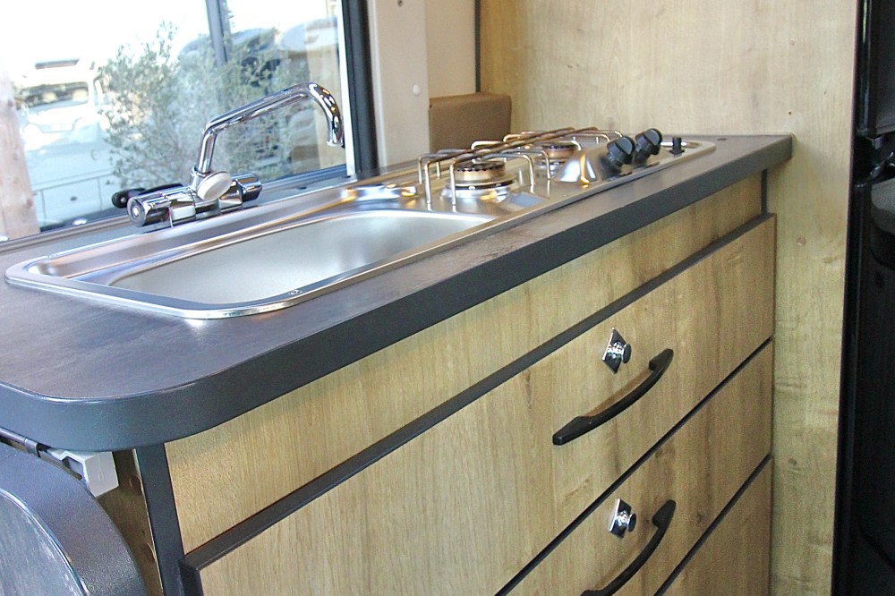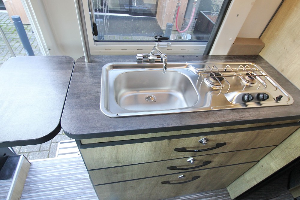 De camper is praktisch ingedeeld en ideaal voor stellen of kleine gezinnen: