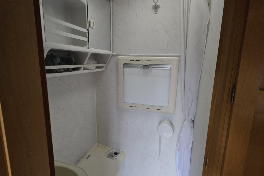 - Badkamer links achter met douche en cassette-toilet
