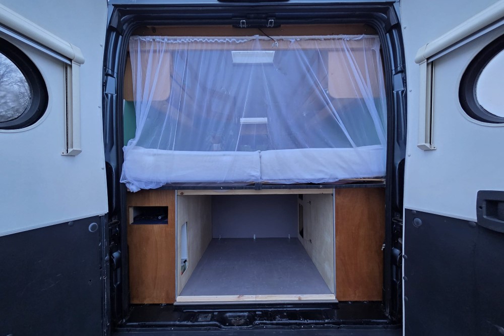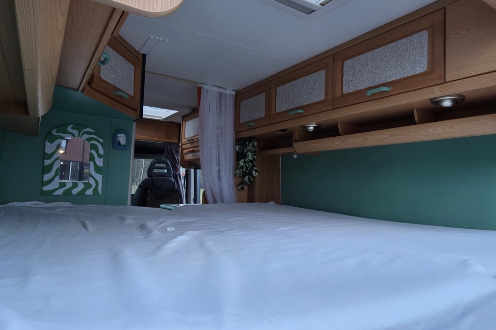 Moes is een ruime campervan met karakter, vrolijke kleuren en een heerlijk groot bed. Een écht gezellig huisje op wielen. Met 222.000 km op de teller (en daar komt nauwelijks nog iets bij) zit er nog meer dan genoeg pit in om de wereld verder te verkennen.