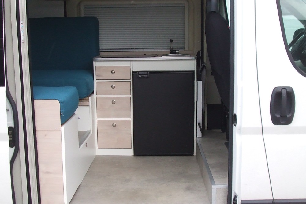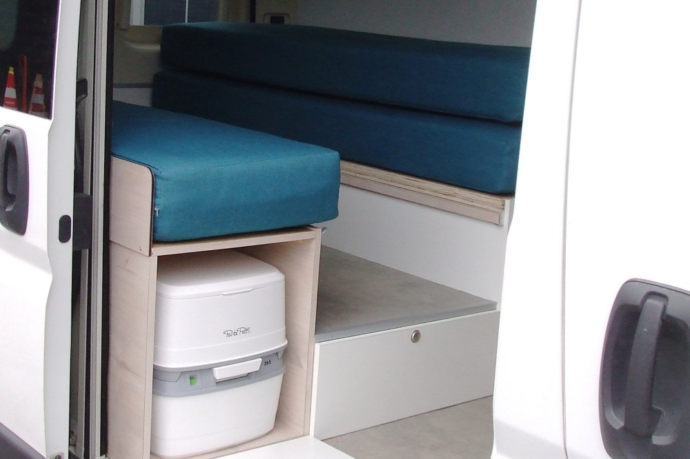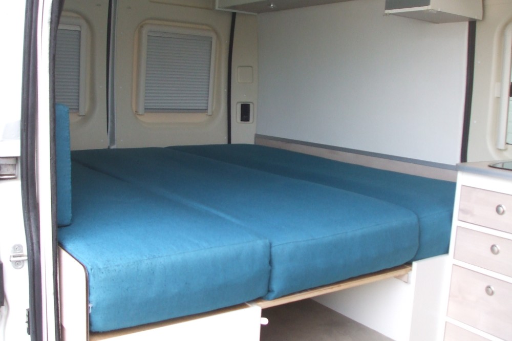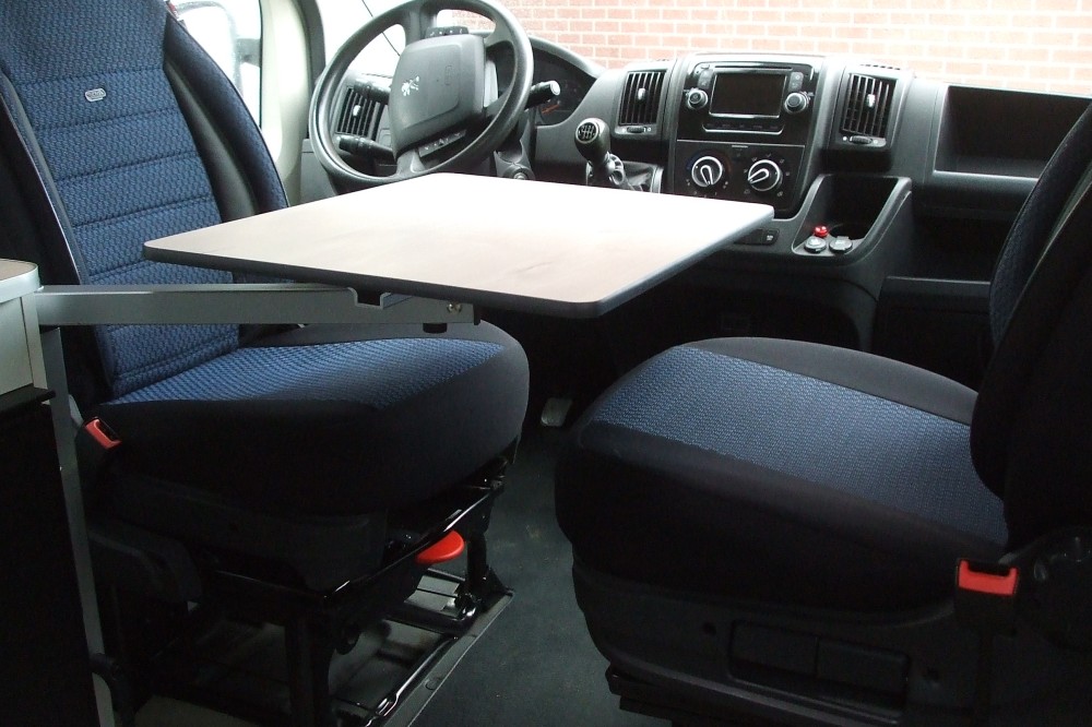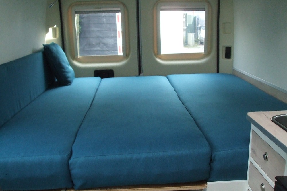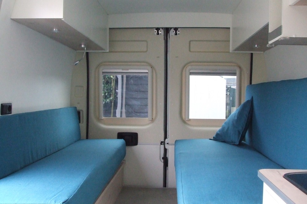 De camper is geschikt voor 2 personen, maar kan eenvoudig worden aangepast naar 3 personen door de passagiersstoel te vervangen door een tweepersoonsbankje. De camper is hier ook officieel op gekeurd en staat voor 3 personen geregistreerd op kenteken.
