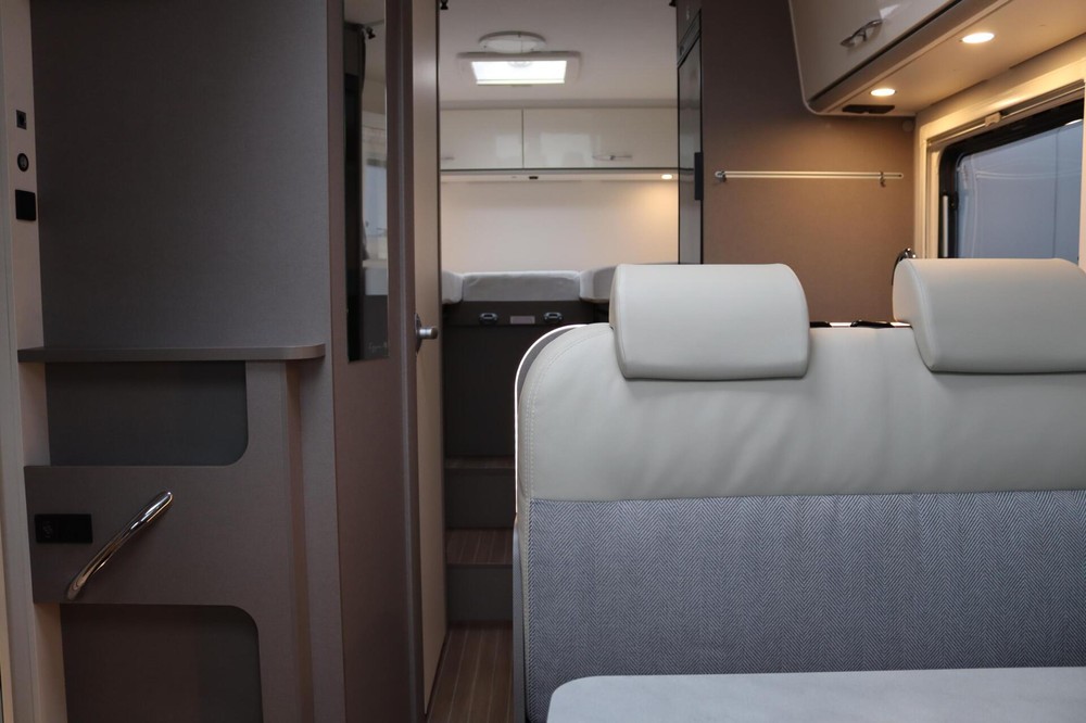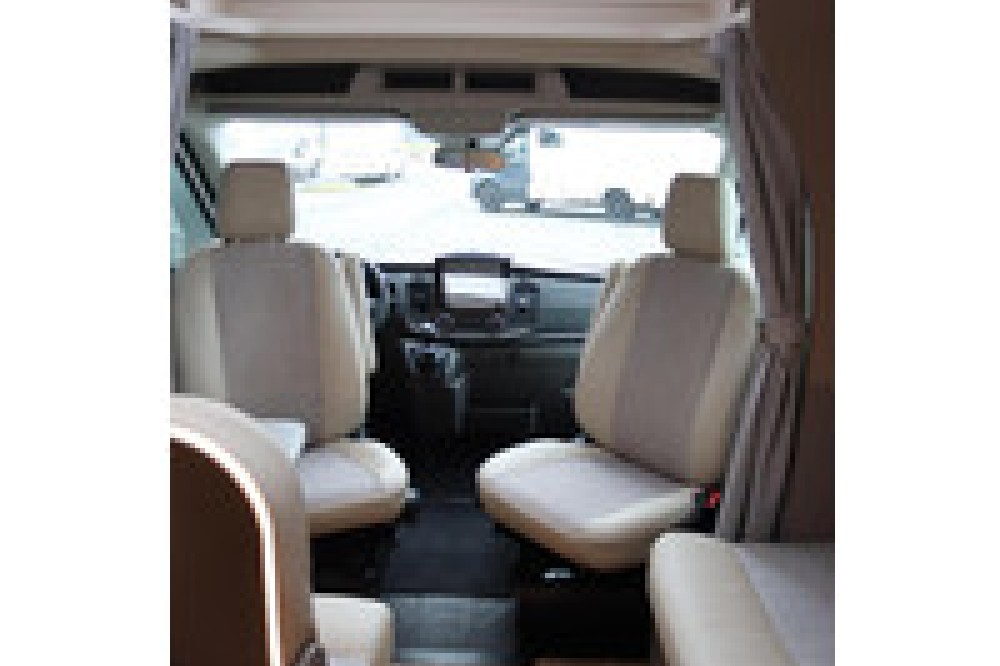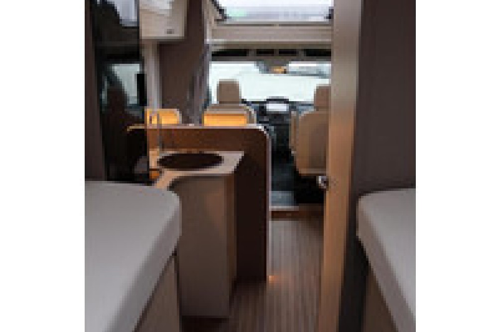 Etrusco T 6.9SF Complete SelectionDe open zichtlijn en de reusachtige garage met veel opbergruimte zorgen ervoor dat je je ook bij een langer verblijf in het voertuig relaxed en ontspannen voelt. Zelfs als het regent, kun je door het panoramische raam genieten van het uitzicht.