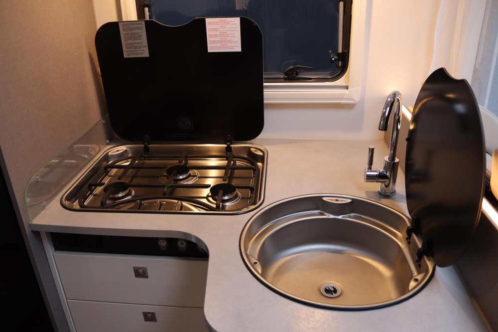 Interieur- 3-pits kookplaat met glasafdekking en RVS spoelbak