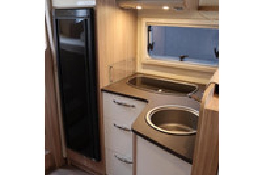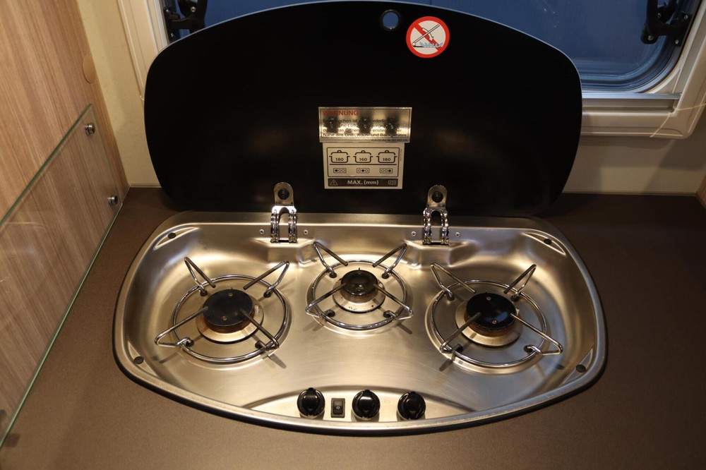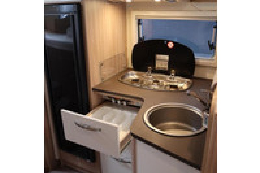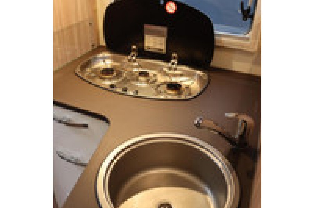 De keuken is van alle gemakken voorzien en nodigt uit om uitgebreid te koken. De camper beschikt over een grote koelkast en een 3-pits gasstel, waardoor je ook onderweg niets hoeft te missen.