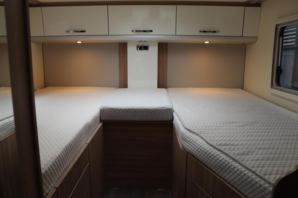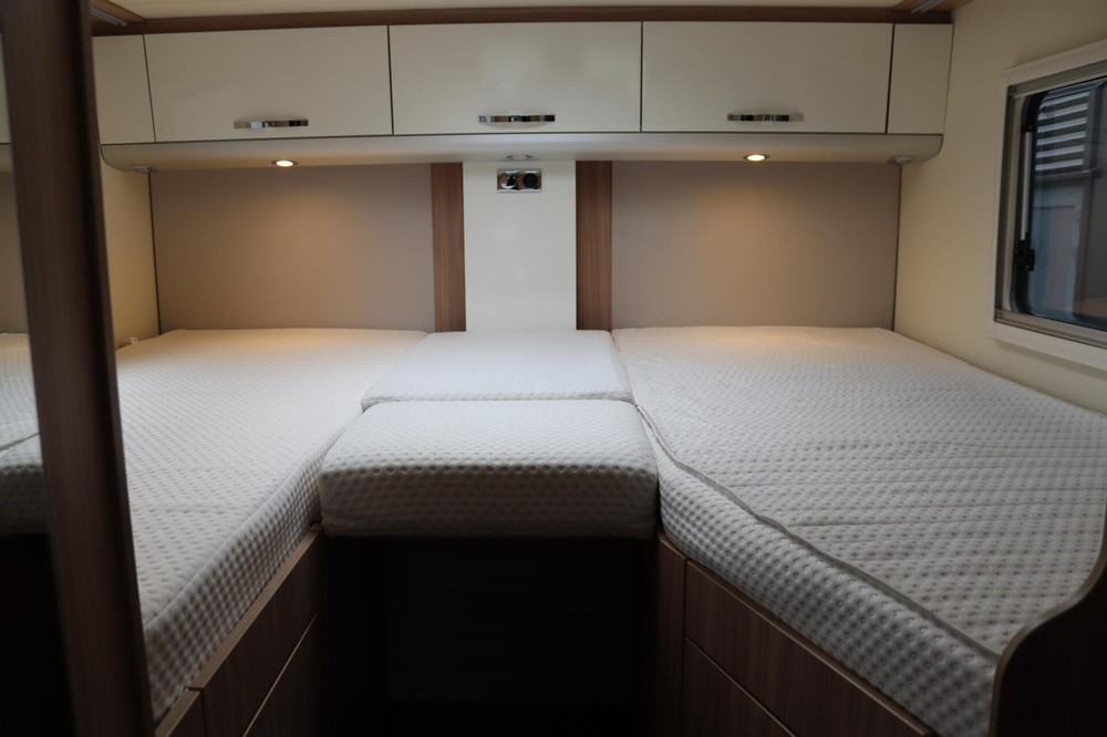 Achterin vind je de luxe lengtebedden, die eenvoudig samen te voegen zijn tot een 2-persoonsbed door middel van een kussen die tussen de 2 bedden in te leggen is.