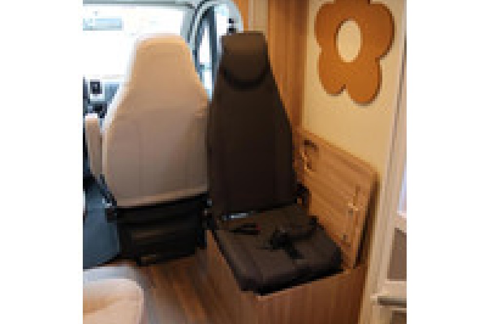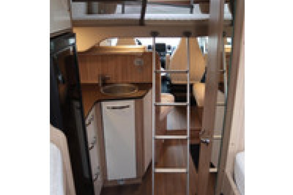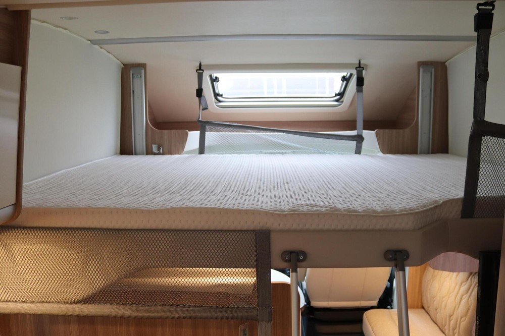 Daarnaast is de camper uitgerust met een elektrisch hefbed, wat zorgt voor een extra slaaplek zonder leefruimte in te hoeven leveren.