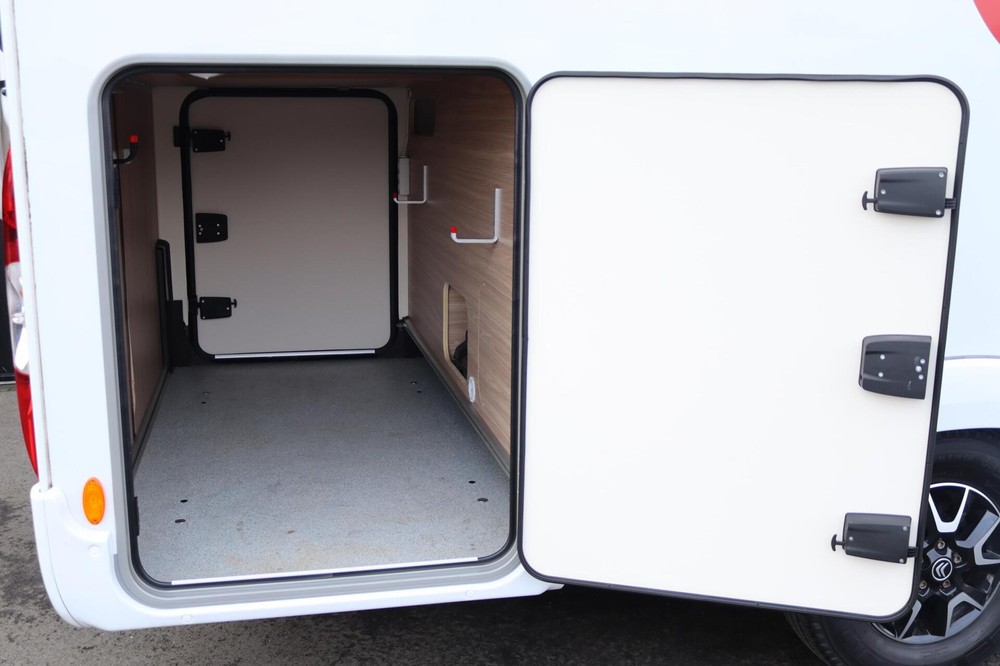 Deze Bürstner biedt bovendien veel opbergruimte, zowel in de kasten als in de garage, waardoor je al je bagage en reisbenodigdheden makkelijk kwijt kunt.