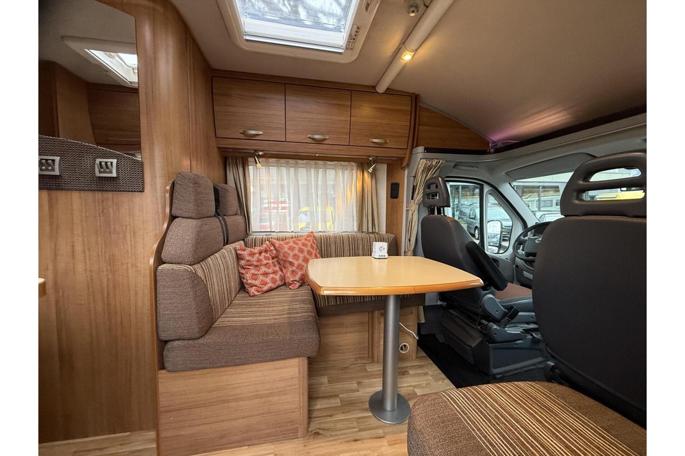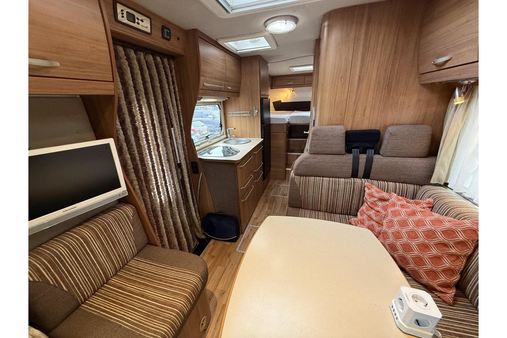 De lounge eetkamer aan de voorzijde heeft vier reisstoelen, een uitschuifbare eettafel
