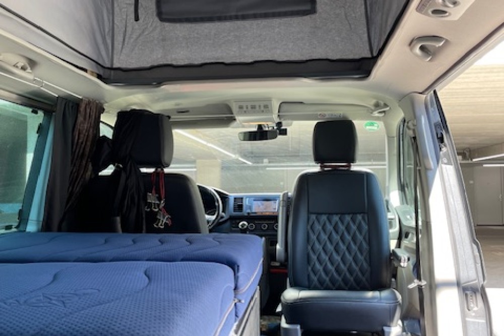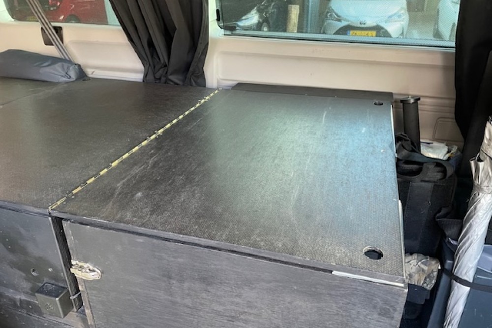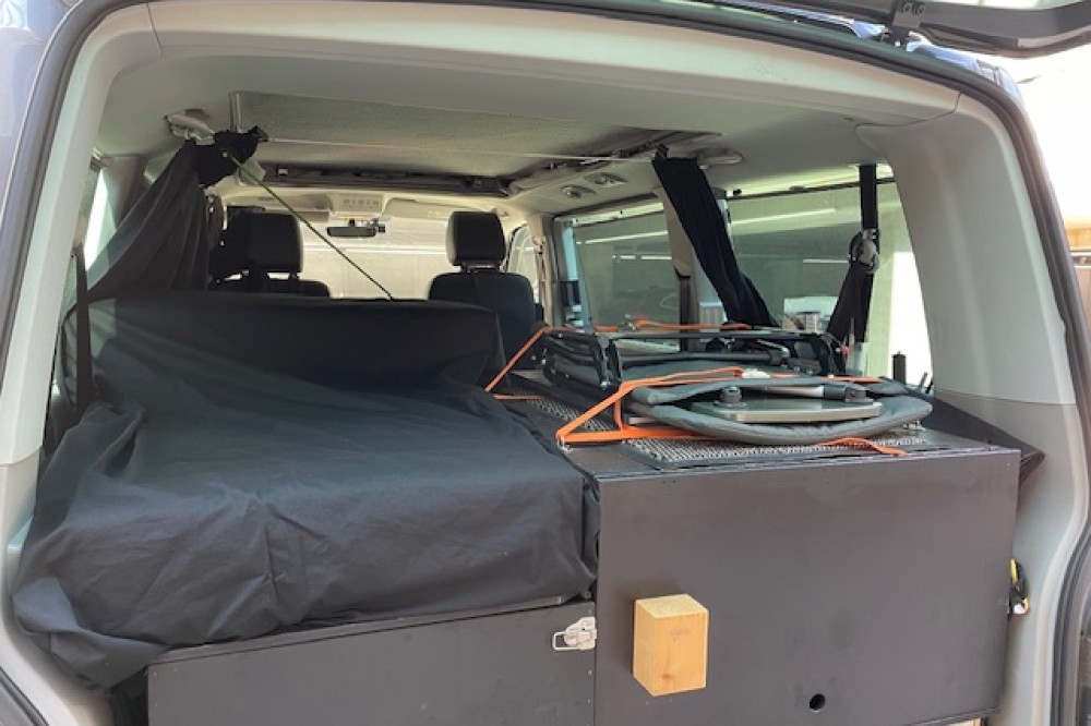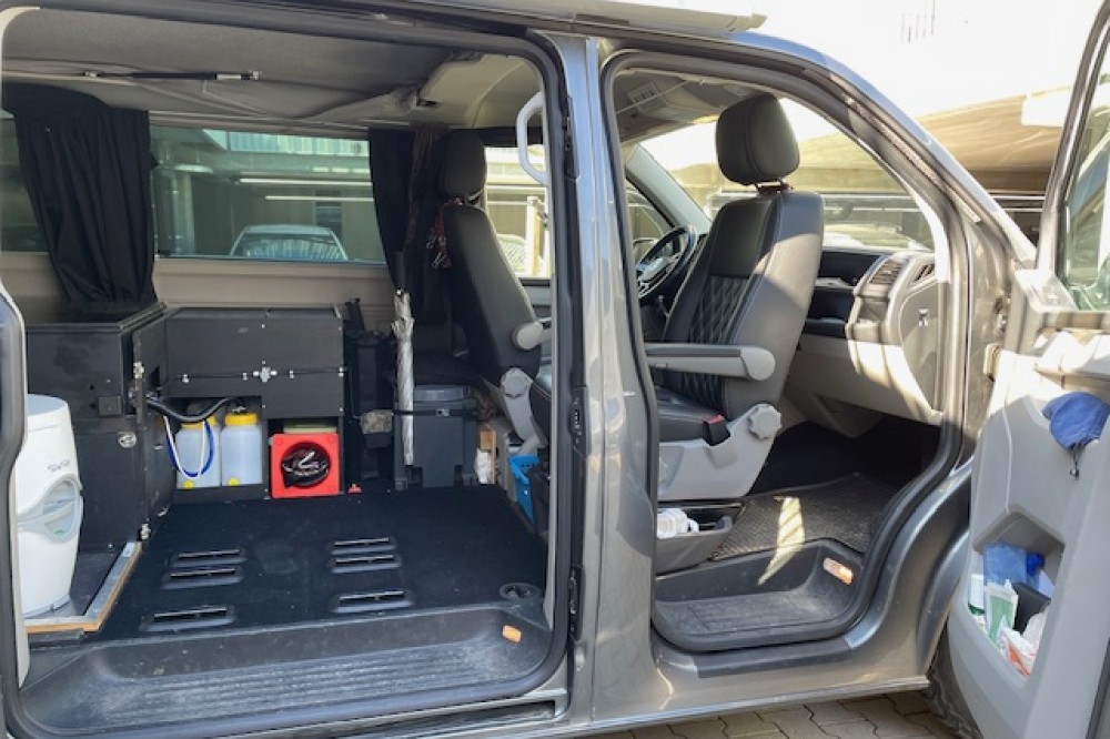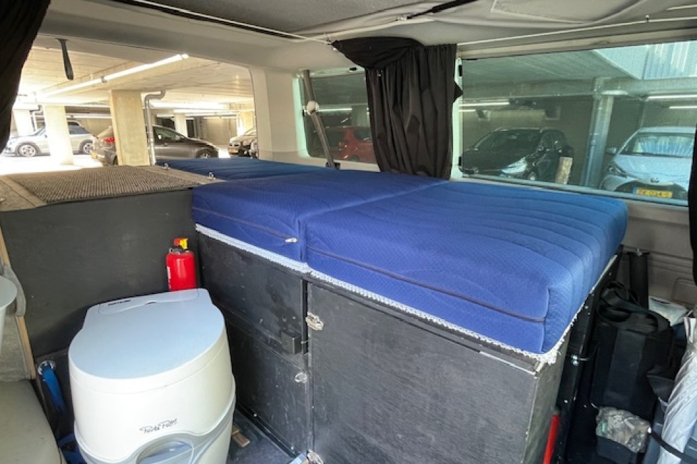 Caravelle personenbus omgebouwd naar bus camper. Nu 1 slaapplaats en geschikt voor 2 slaapplaatsen. Uitneembare derde stoel. Drie grote uitschuifladen en 5 opberboxen. Zo goed als nieuwe achtertent. Twee sets zomer en winterbanden; beide eerste seizoen. 4 Motion uitvoering. Dashcam voor en achter. (Zeer geschikt voor vogels spotten en fotografie.)