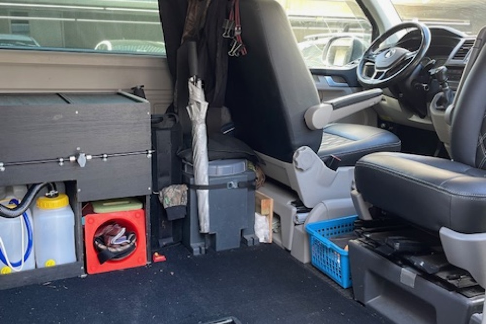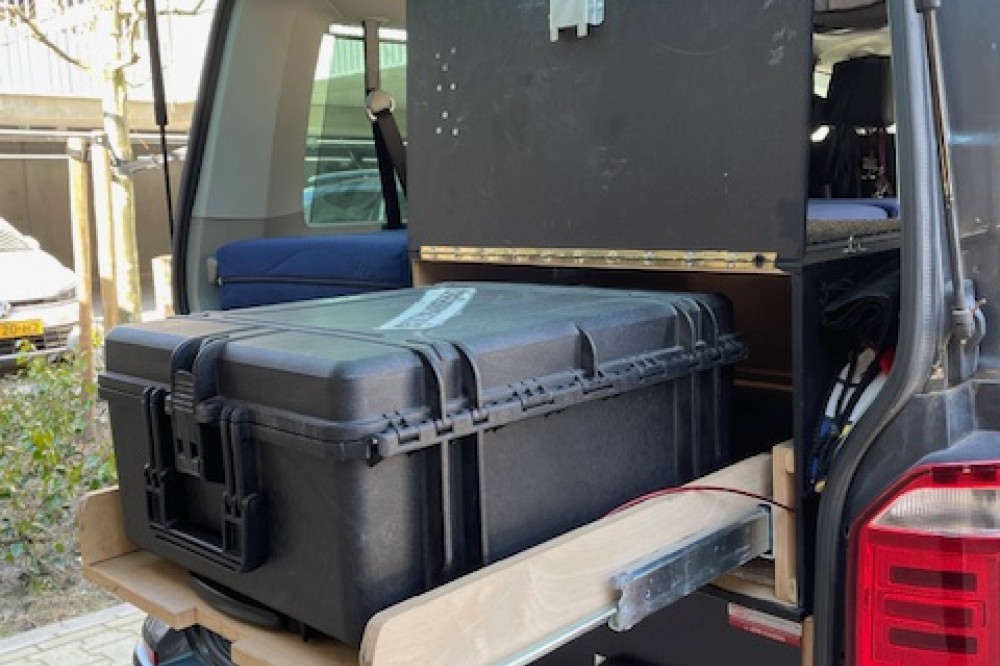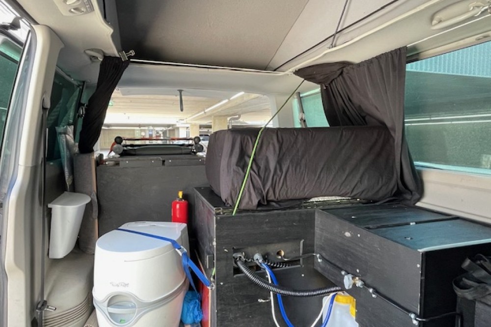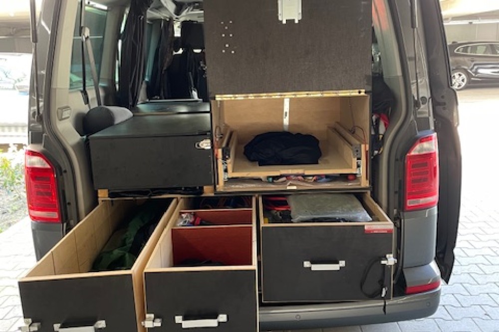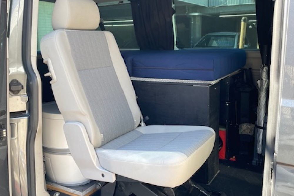 Caravelle personenbus omgebouwd naar bus camper. Nu 1 slaapplaats en geschikt voor 2 slaapplaatsen. Uitneembare derde stoel. Drie grote uitschuifladen en 5 opberboxen. Zo goed als nieuwe achtertent. Twee sets zomer en winterbanden; beide eerste seizoen. 4 Motion uitvoering. Dashcam voor en achter. (Zeer geschikt voor vogels spotten en fotografie.)