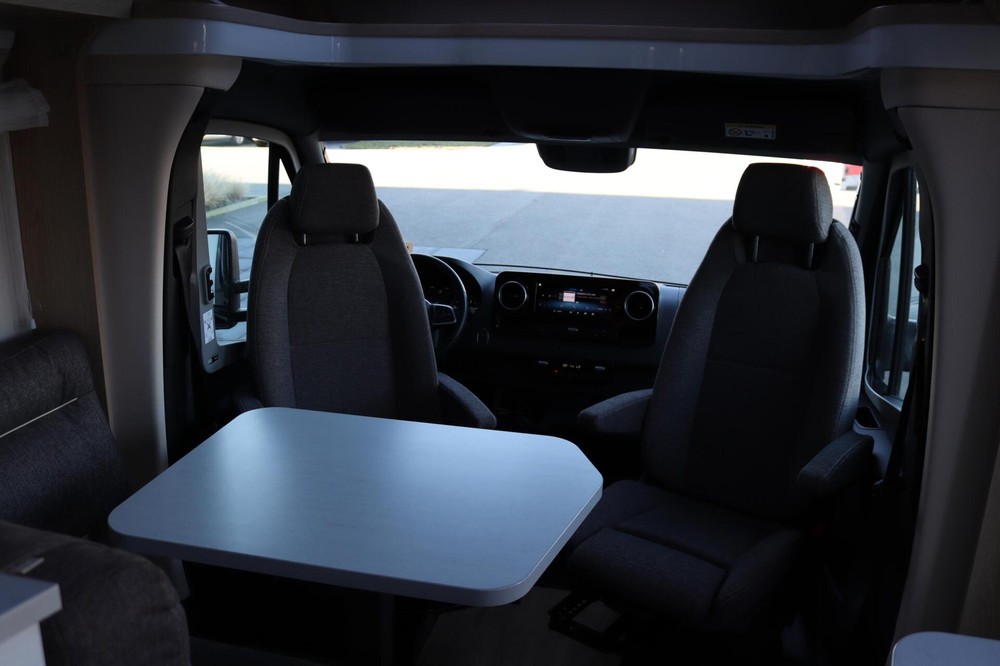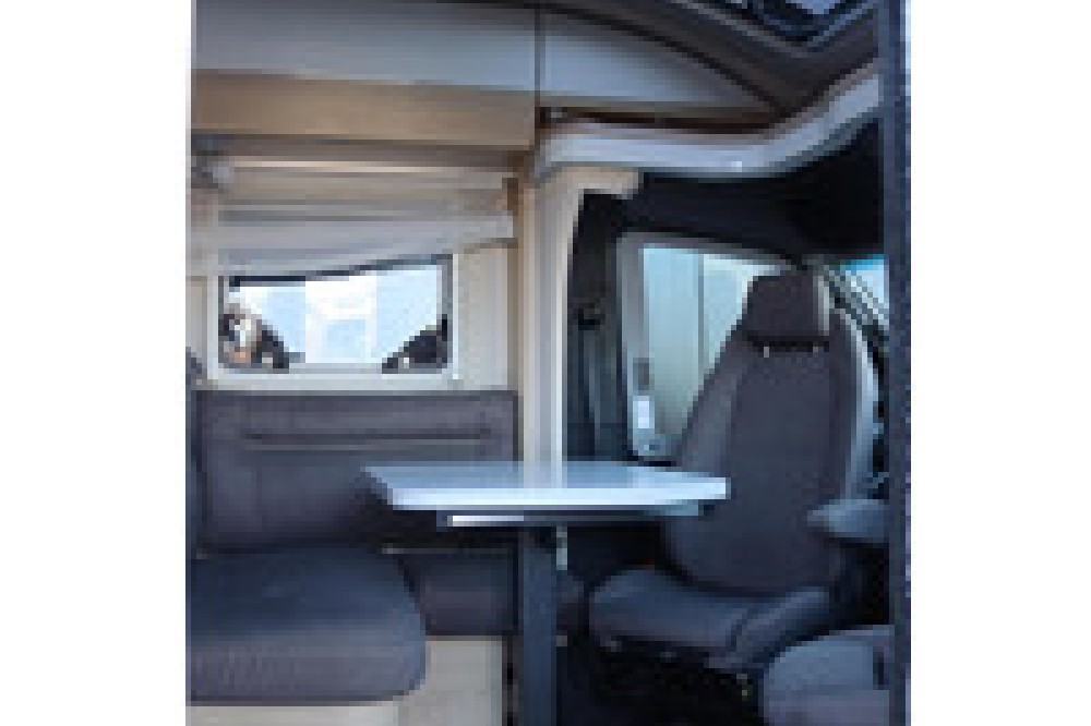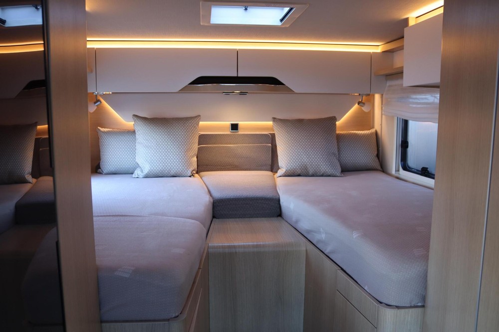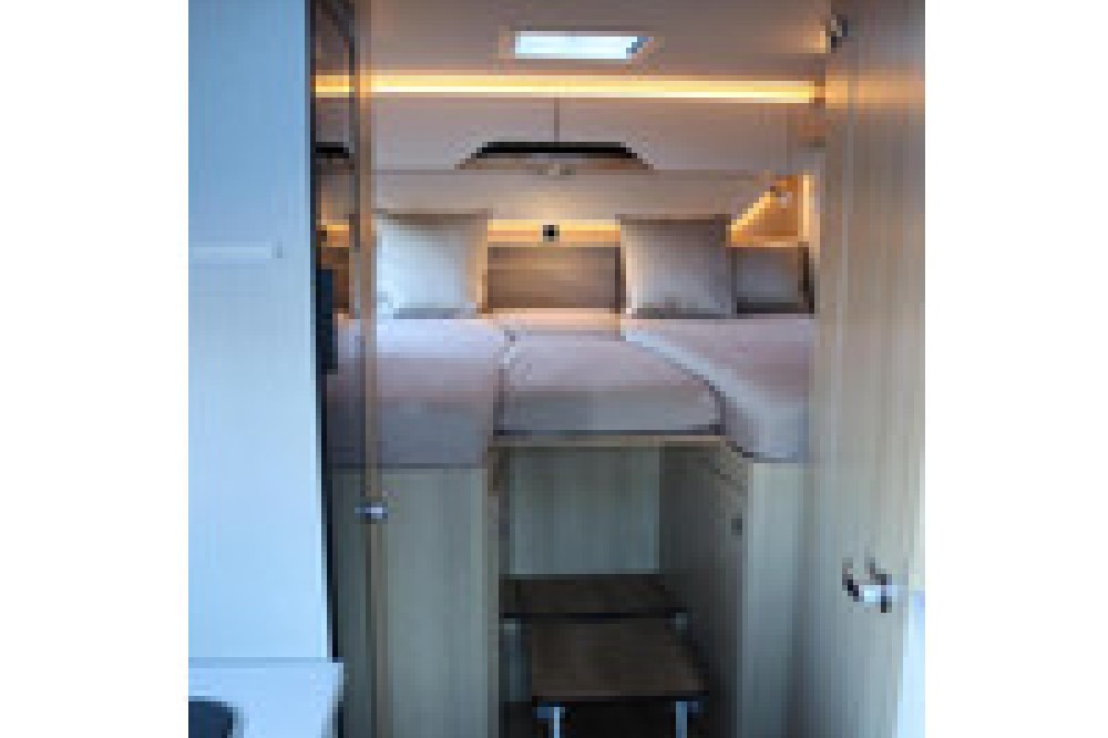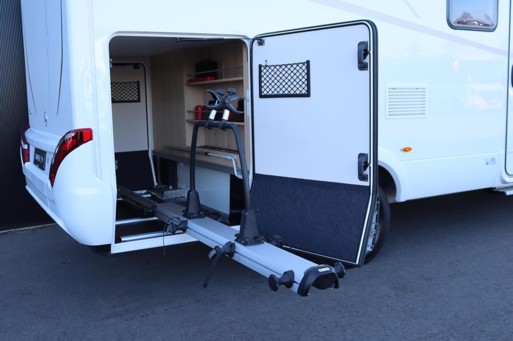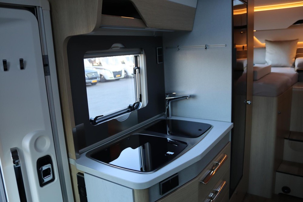 Luxe en praktische detailsDe Hymer BMC-T 580 biedt een ruime zithoek met een L-zit die ontstaat door de luxe draaibare voorstoelen. Het elegante Grand Oak meubeldecor in combinatie met de luxe Janeiro bekleding zorgt voor een verfijnde uitstraling. Dankzij de dubbele bodem, die verwarmd is en extra opbergruimte biedt, kun je jouw spullen veilig en droog opbergen. De 180 liter schoonwatertank en de 150 liter vuilwatertank zijn weggewerkt in de dubbele bodem, terwijl je vanuit de buitenkant eenvoudig toegang hebt tot de opslagruimte. De ruime garage heeft een laadhoogte van 132 cm, is aan beide zijden toegankelijk en biedt voldoende ruimte voor uw fietsen, scooter en bagage.