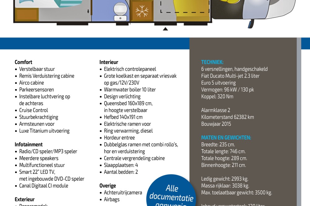 Er zijn aan aantal onderdelen vernieuwd: koppeling, drukgroep, velg en wiel (vanwege een klapband), compleet raam (er zat een scheurtje in de oude), Smart TV met Canal Digital module, nieuwe Thule luifel. Zie bijgevoegde bestanden. Bekleding voorstoelen laten beginnende gebruikssporen zien, overige bekleding is netjes. Taxatierapport van een klein jaar terug is desgewenst ter inzage.