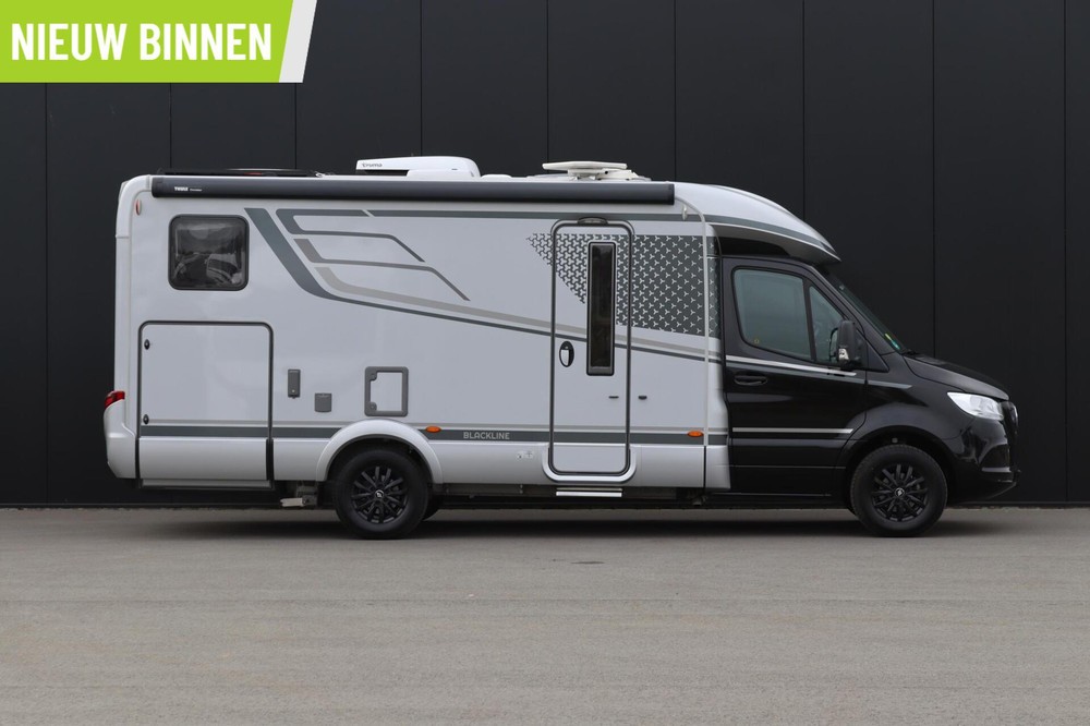 - Blackline pakket (Pakket bevat o.a.: Obsidiaan zwart Mercedes / Crystal silver Hymer / Plus pakket / Bestickering / Zwarte velgen (all season) / Bumpers in kleur / Luifel / Houten douchevlonder / Wooncomfortpakket enz.)