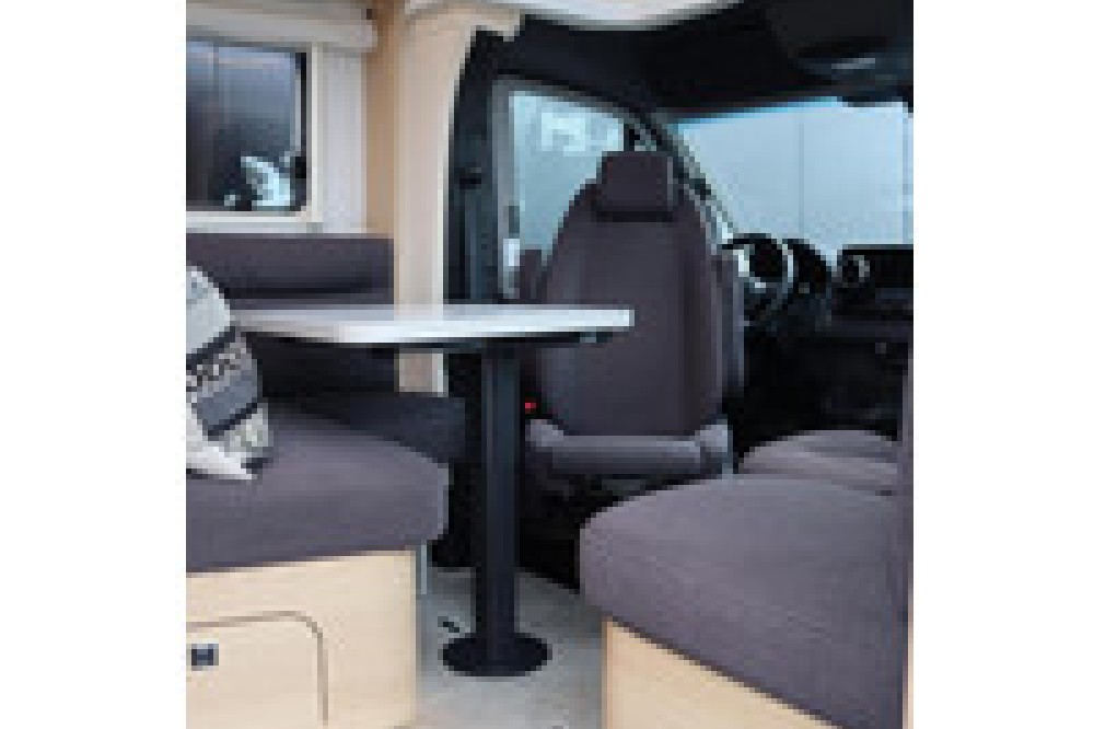 De camper is o.a. voorzien van het geliefde Blackline pakket, een dak airco voor comfort in warme landen, drie panoramadaken voor een zee van licht en zelfs een derde slaapplaats.