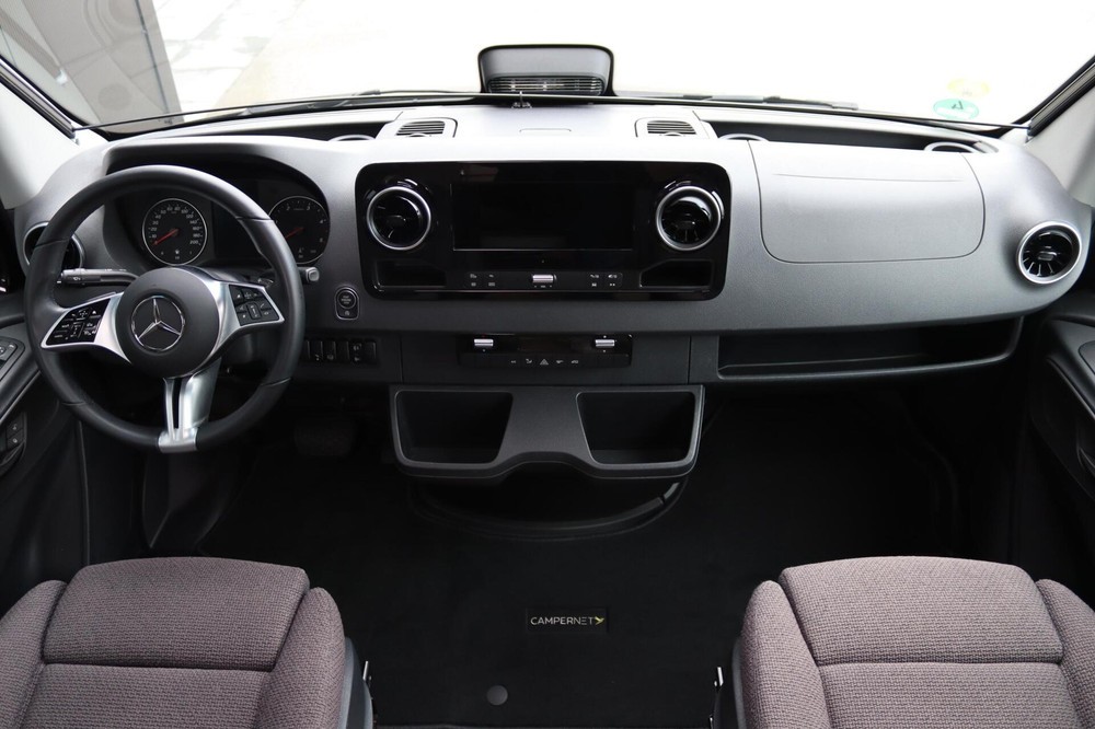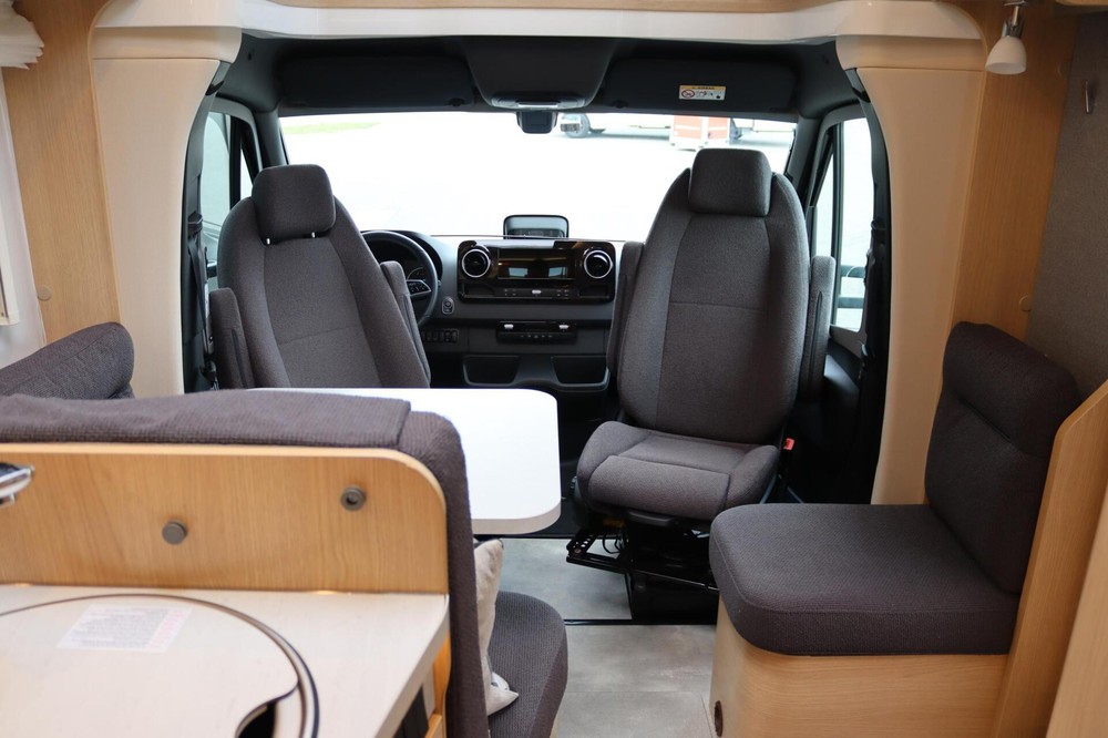 Panorama cabine met toptechnologieIn de cabine van de Hymer BMC-T 600 geniet je van een panoramisch uitzicht, zodat je niet alleen de omgeving optimaal kunt bewonderen, maar ook tijdens het rijden goed overzicht hebt op het verkeer. Het Mercedes-Benz MBUX multimedia systeem zorgt voor een soepele navigatie- en entertainmentervaring, terwijl de luxe pilotenstoelen, die volledig verstelbaar en draaibaar zijn, het comfort verhogen.