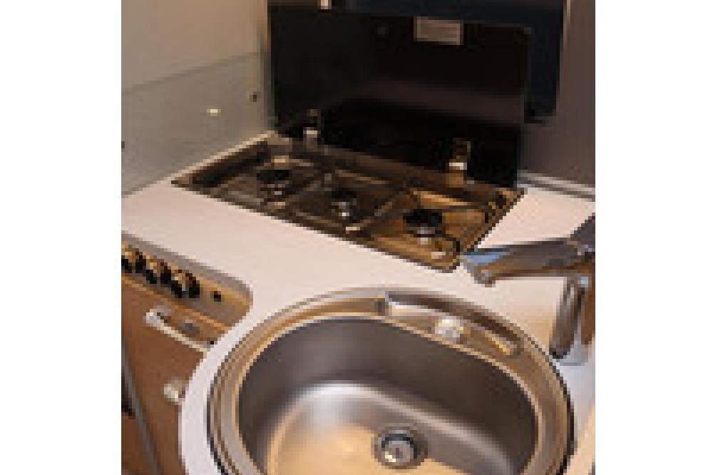 Interieur- 3-pits kookplaat met glasafdekking en RVS spoelbak