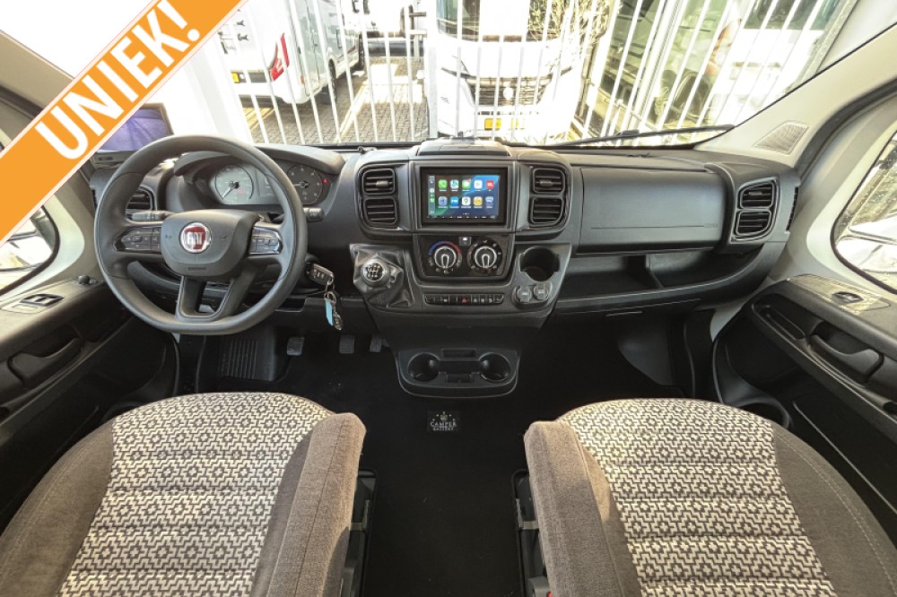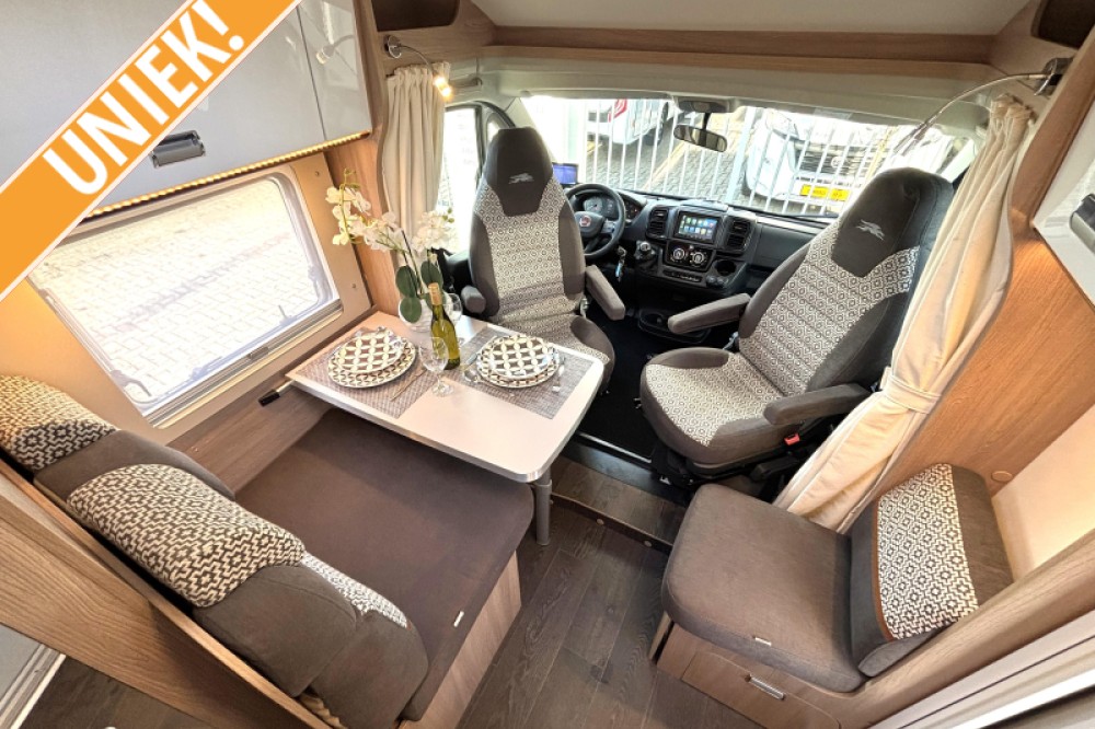 Deze unieke Laika Compact 5 is gebouwd op de allernieuwste Fiat Ducato (Fiat 8!) en is voorzien van de nog krachtigere en zuinigere Multi-Jet III Diesel Euro 6 motor met 140 pk. De vernieuwde Ducato is te herkennen aan de rode cijfers op de cabine.