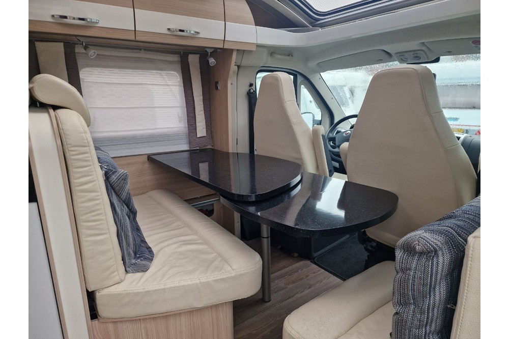 COCKPIT ✔ ABS ✔ ASR ✔ Achteruitrijcamera ✔ Airbag bestuurde ✔ Airbag passagier(s) ✔ Armsteun(en) ✔ Centrale deurvergrendeling ✔ Cruise Control ✔ Cruise Control ✔ Elektrische ramen ✔ Elektrische spiegels ✔ Startonderbreker ✔ Stuurbekrachtiging ✔ Touchscreen ✔ Verduistering cabine INTERIEUR ✔ Boiler ✔ Douche ✔ Toilet ✔ Koelkast ✔ Verwarming ✔ Combi Horren ✔ Combicassettes ✔ Ringverwarming ✔ Warm water voorziening ✔ Draaibare stoelen EXTERIEUR ✔ Dakluik heki ✔ Garage ✔ Lichtmetalen velgen ✔ Panoramadak ✔ Luifel ✔ Fietsenrek ✔ Dakluik MULTIMEDIA ✔ Automatische satelliet schotel ontvangs Astra 1 ✔ Radio ✔ Televisie ✔ Navigatie ✔ Achteruitrijcamera VEILIGHEID ✔ Brandblusser EXTRA ✔ Airconditioning ✔ Bearlock versnellingsbakslot ✔ Elektrische buitenspiegels ✔ Lederen bekleding ✔ Lichtmetalen velgen ✔ Navigatiesysteem ✔ Vuilwatertank Interieurindeling Slapen ✔ Enkele bedden Zitten ✔ Middenzit Keuken ✔ Midden keuken Badkamer ✔ Achter badkamer