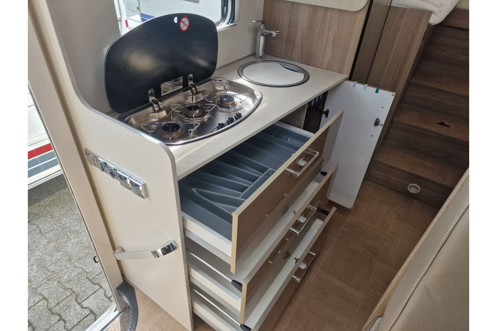 Zeer nette en goed onderhouden camper met vele extra's zoals luifel, Maxfann, E&P leveller systeem, Zonnepaneel, LPG tanks, Contruct stuurslot beveiliging goedgekeurd voor verzekering,verduistering cabine, reservewiel in garage, Verduistering cabine, hordeur en lichtmetalen velgen 9 traps automaat