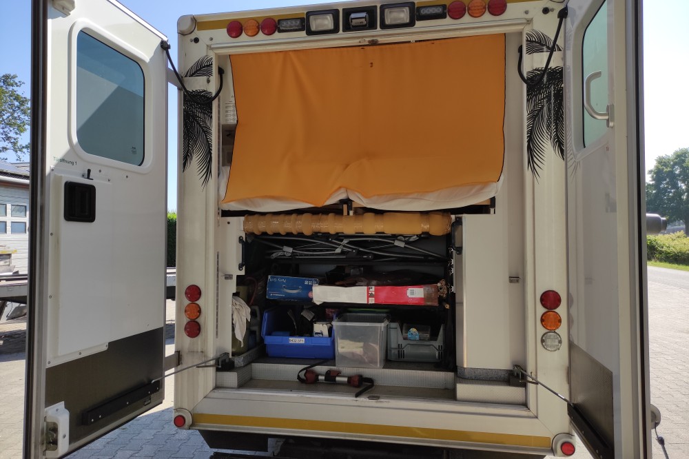Ex rettungswagen uit Duitsland met een overzetbare WAS opbouw.
