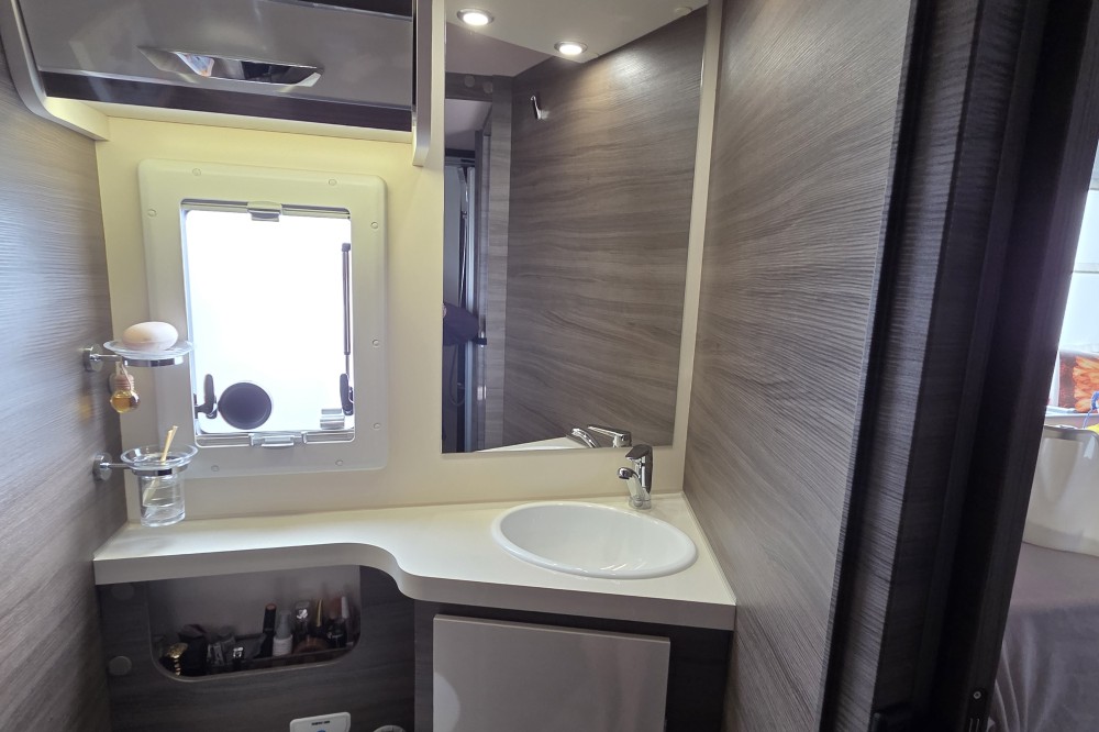 De ruime zithoek met draaibare cabinestoelen zorgt voor veel leefruimte. Achterin bevinden zich comfortabele enkele bedden met daaronder een grote garage. De camper is zeer netjes onderhouden, er is niet in gerookt en er zijn geen huisdieren in geweest.