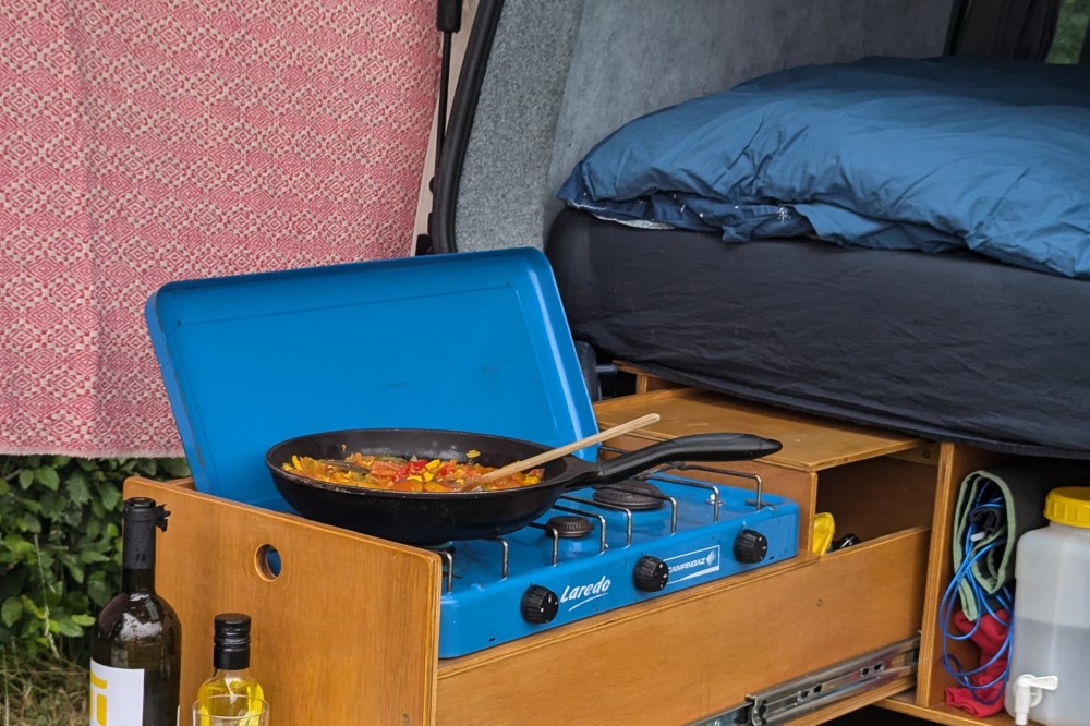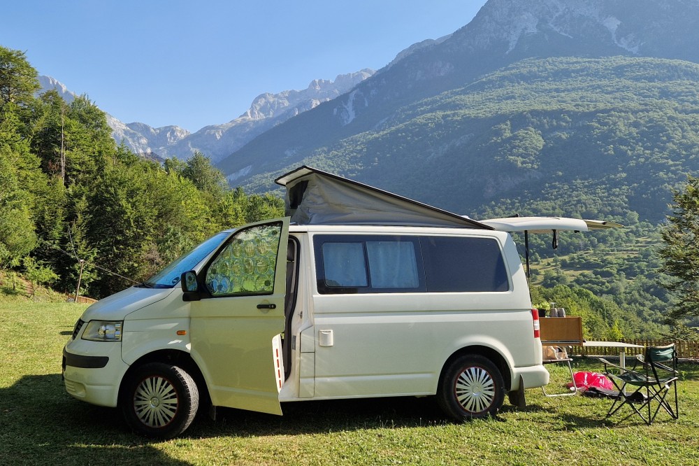 De camper wordt zeer compleet geleverd met luifel, stoelen, pannen, bestek en alle benodigde kabels. Instappen en vertrekken dus.