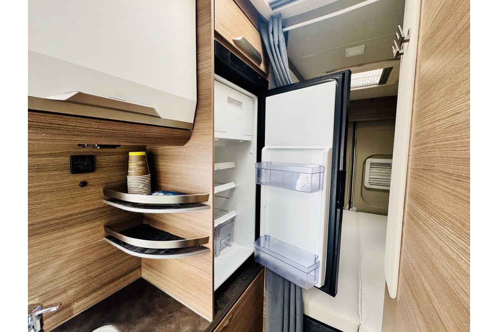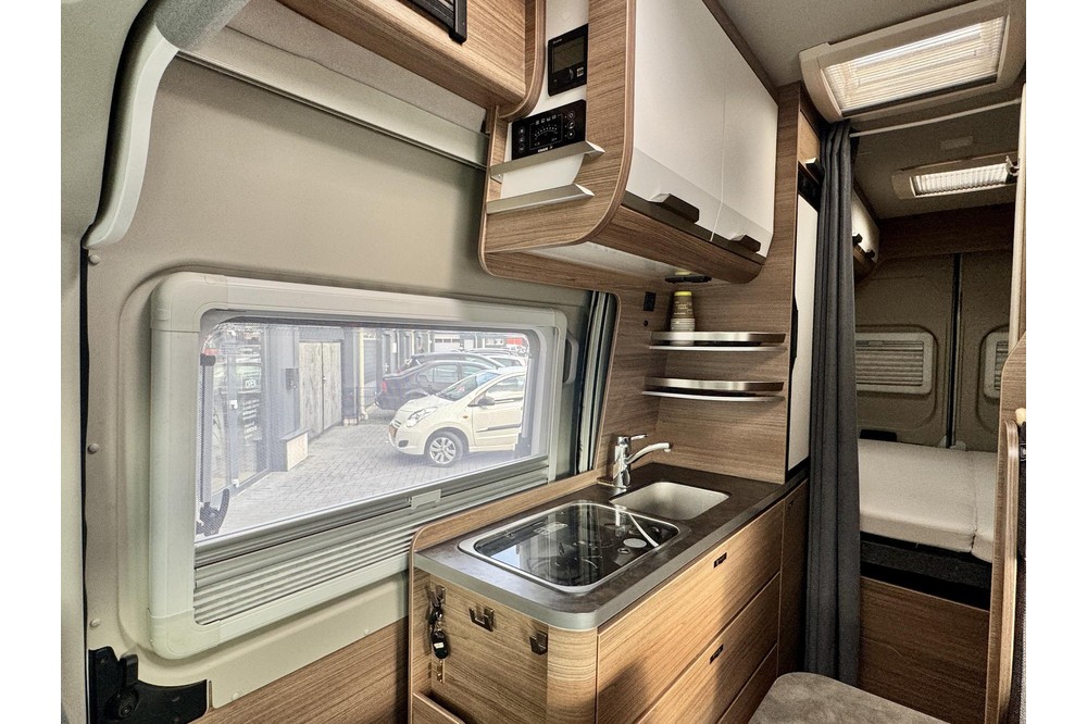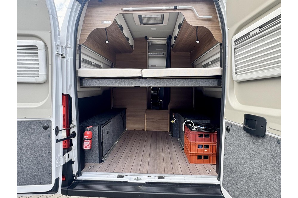 Binnenin is deze Boxlife slim en compleet ingericht. De praktische middenkeuken is voorzien van een gascomfort, boiler en een hoge koelkast met vriesvak. De vaste schoonwatertank (102 liter) en verwarmde afvalwatertank (90 liter) zorgen ervoor dat je ook bij lagere temperaturen zorgeloos kunt reizen. De camper beschikt bovendien over een compacte maar complete toilet- en wasruimte met cassettetoilet.