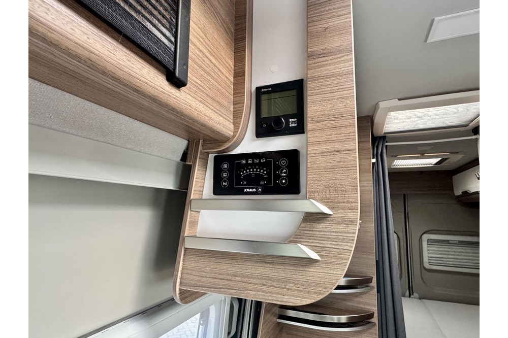 Ook op het gebied van multimedia en techniek is deze camper modern uitgerust. Het Dynavin navigatiesysteem met DAB+ en achteruitrijcamera zorgt ervoor dat je altijd ontspannen onderweg bent. Extra luidsprekers in het woongedeelte zorgen voor een fijne sfeer, terwijl het TRUMA CP-Plus digitale bedieningspaneel het klimaat en de verwarming eenvoudig regelbaar maakt.