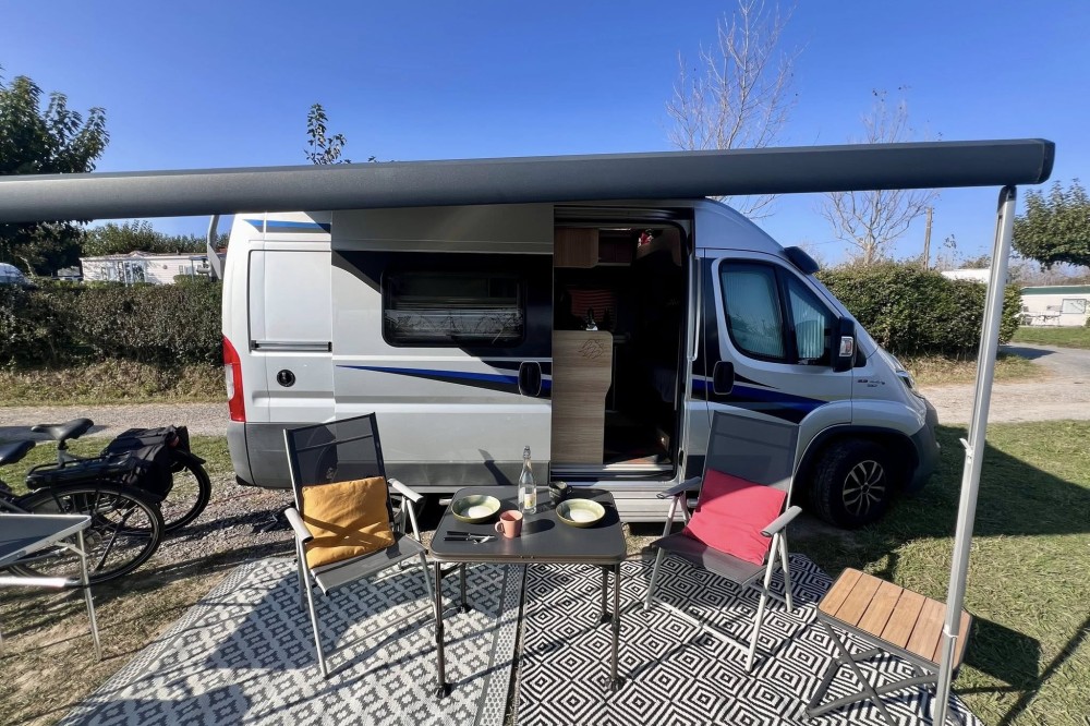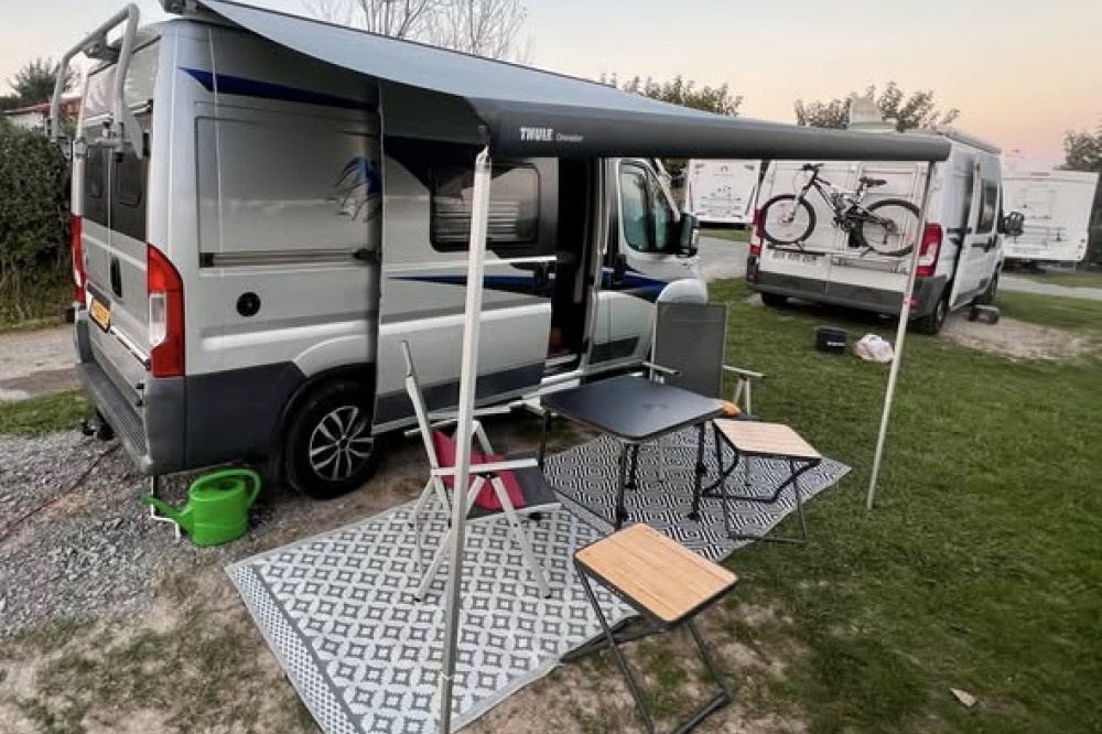 - Extra’s: set winterbanden en een dekkleed voor over de gehele camper