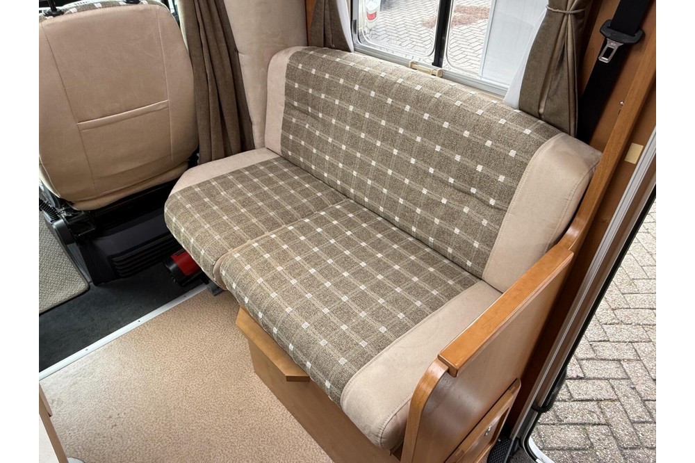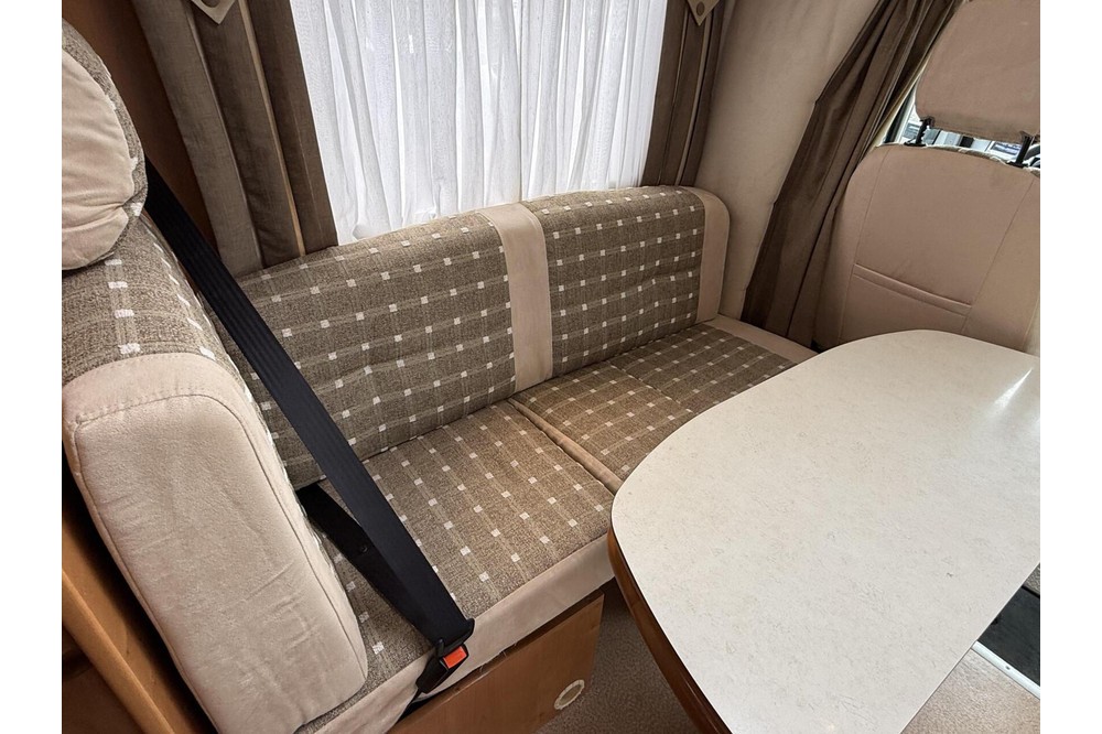 Enorme ruimte in slechts 6,99 m! In de XXL-woonkamer van de 7086 is er twee grote bankjes die naar elkaar toe staan, omgebouwd tot 2 stoelen met veiligheidsgordels naar de weg. Naast deze vier stoelen met veiligheidsgordels is deze camper ook ingericht met drie echte woonruimtes: woonkamer, keuken en slaapkamer. Een kampioen op het gebied van comfort!