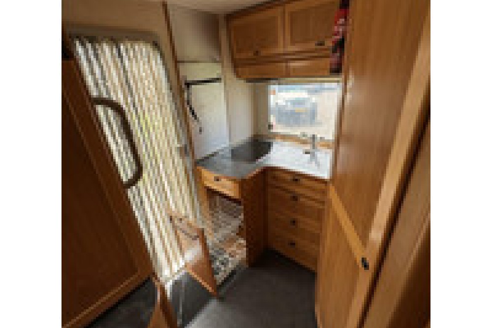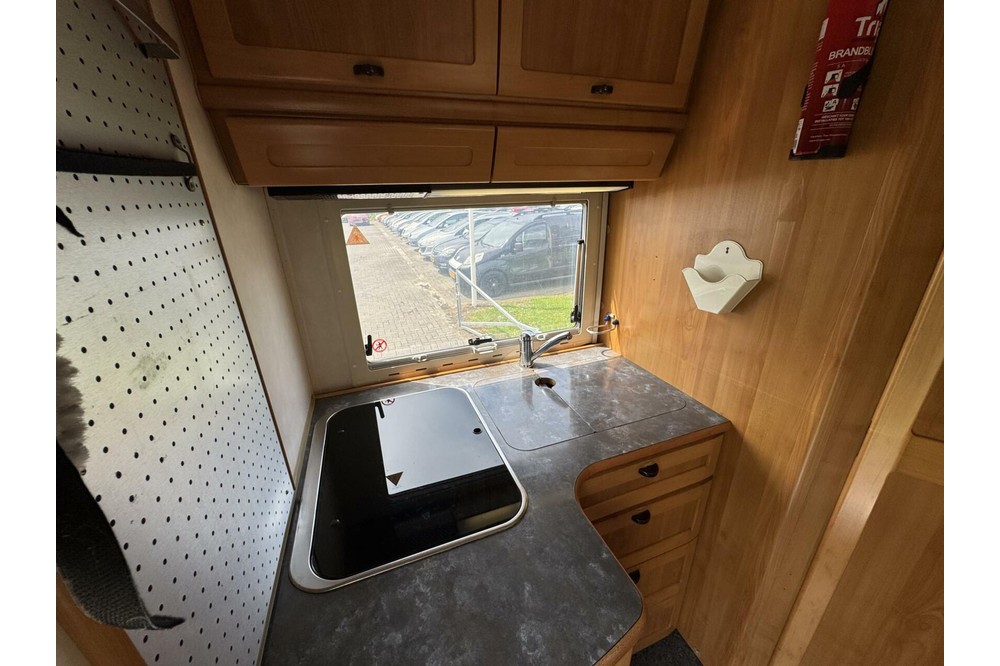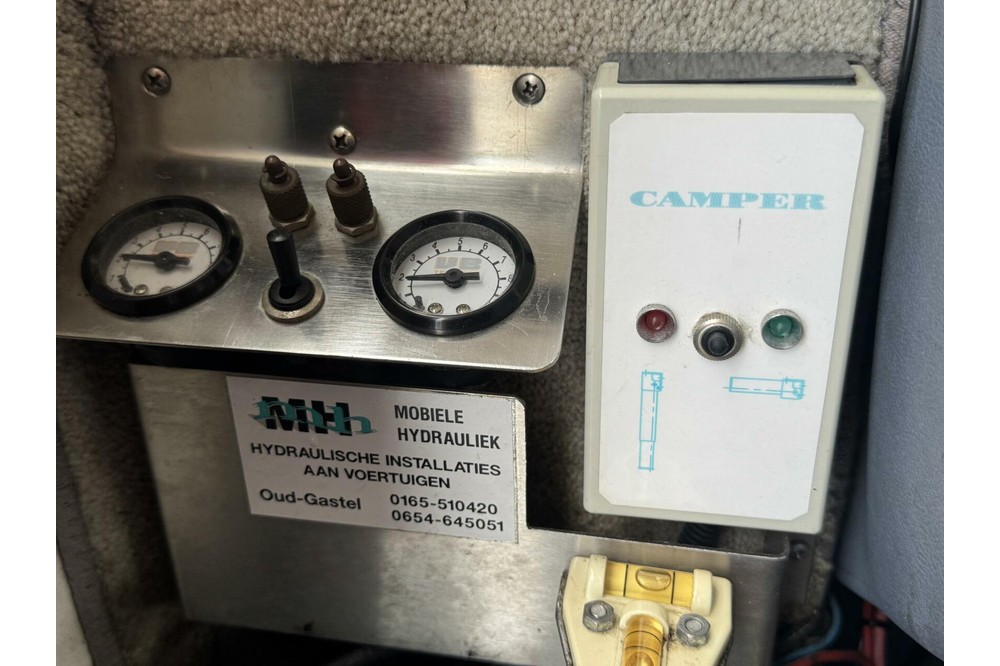Volledig uitgerust - inclusief een eindkeuken met spoelbak, Gasstel en een ruime koelkast. Een badkamer met een cassettetoilet, en een douche, en een warm watersysteem. De camper is ook uitgerust met een hydrolische poten systeem voor het rechtzetten van de camper. Makkelijk te bedienen van uit de cabine aan de bestuurderskant zorgt dit voor nog extra gemak. Heb je veel zon en wil je in de schaduw zitten? Ook dat kan geregeld worden met het mooie luifel systeem aan de zijkant van de camper, die elektrisch zowel als handmatig te bedienen is. Luchtvering op de achteras. Elektrische instap trede.