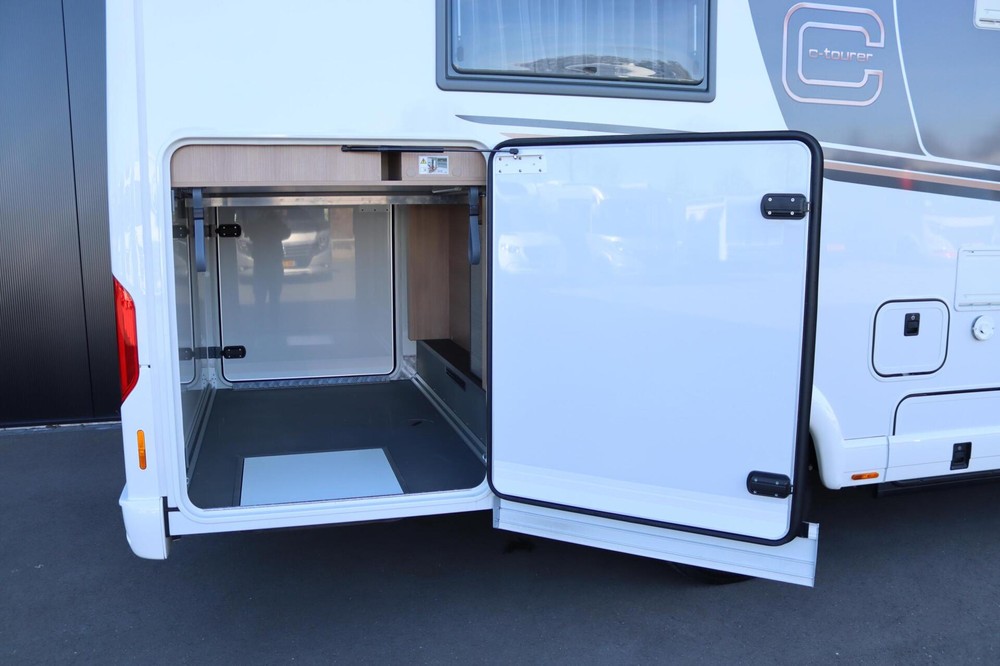 De Carthago C-Tourer I 150 QB. Deze 7,61 meter lange integraal camper staat garant voor kwaliteit en degelijkheid. Dankzij zijn dubbele bodem en handige indeling biedt hij veel opbergruimte.