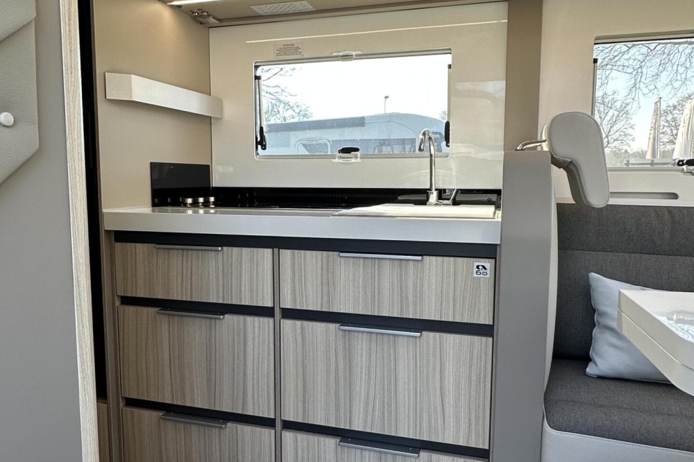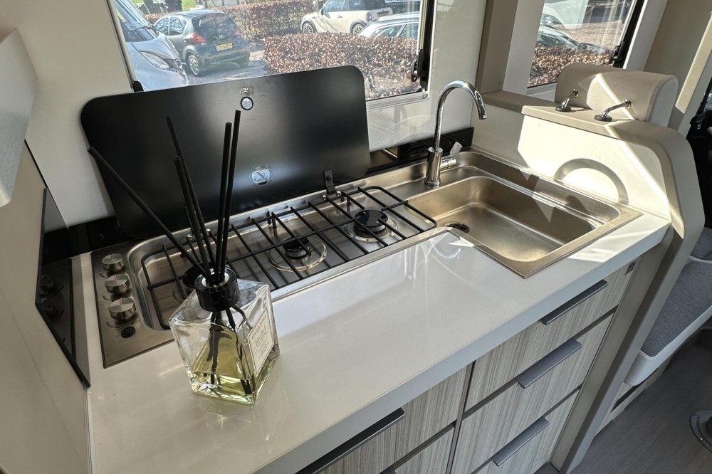 De camper wordt geleverd met een Construct antidiefstalslot en garantie tot augustus 2027.