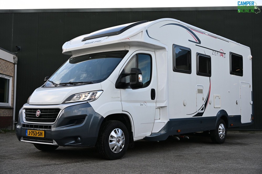 De Roller Team Zefiro 266 TL is een populaire, moderne half-integraal camper die bekend staat om zijn ruime indeling en comfort, gebouwd op een Fiat Ducato chassis. Deze camper is ontworpen voor kampeerders die op zoek zijn naar privacy en veel leefruimte, met als kenmerk een centraal queensbed achterin en een aparte douche- en toiletruimte.