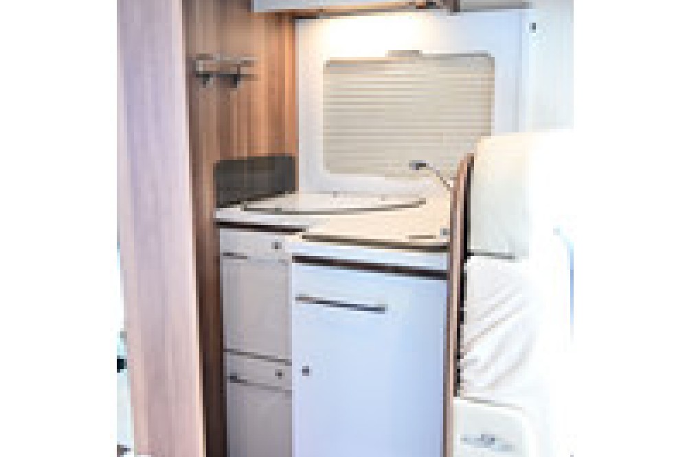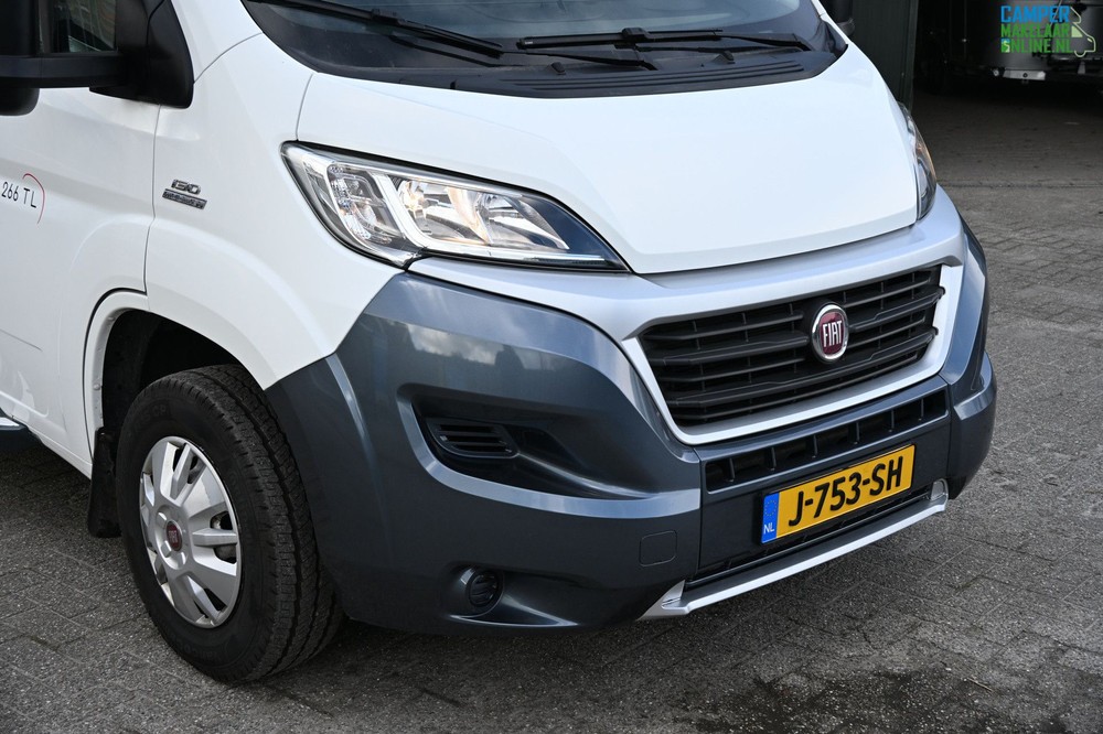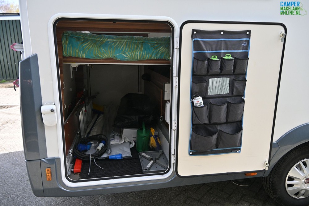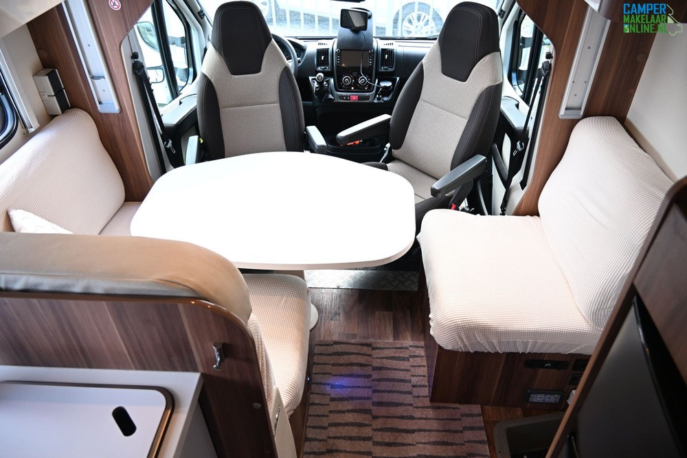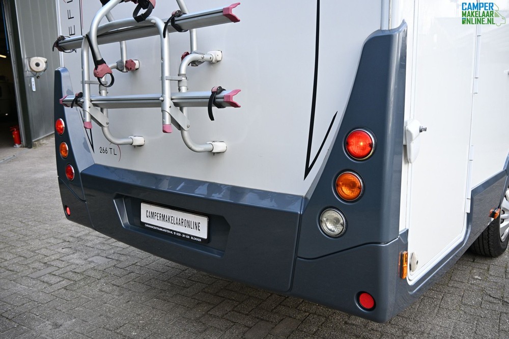 De Zefiro 266 is gebouwd op het betrouwbare chassis Fiat Ducato wat zorgt voor prima rijprestaties. De camper beschikt over een ruime garage achterin, onder het centrale bed, toegankelijk van beide kanten. Een ruime keuken met een 3-pits kooktoestel, een spoelbak en een grote koelkast met apart vriesvak. Verder is er een cassetteluifel, fietsendrager en zonnepaneel aanwezig.