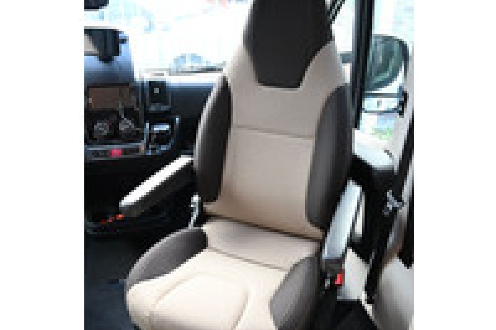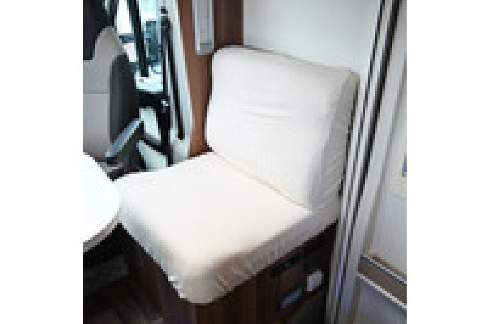 Zithoek: Een gezellige leefruimte met een L-vormige bank en draaibare cabinestoelen (pilotenstoelen), wat zorgt voor een ruime zithoek.