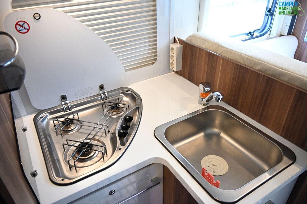 Hefbed: Boven de zithoek bevindt zich vaak een elektrisch bedienbaar hefbed, waardoor de camper geschikt is voor vier tot vijf personen.