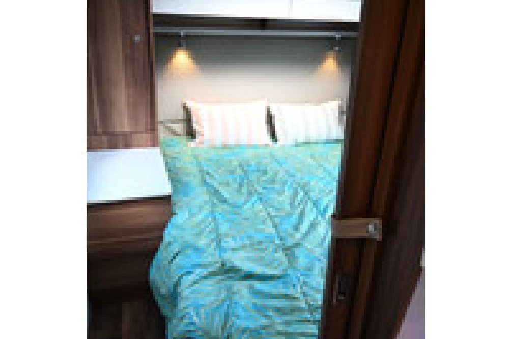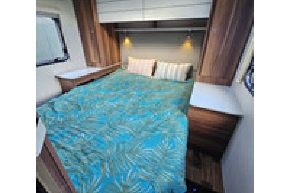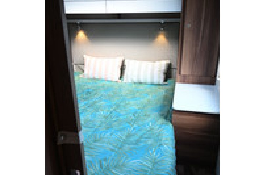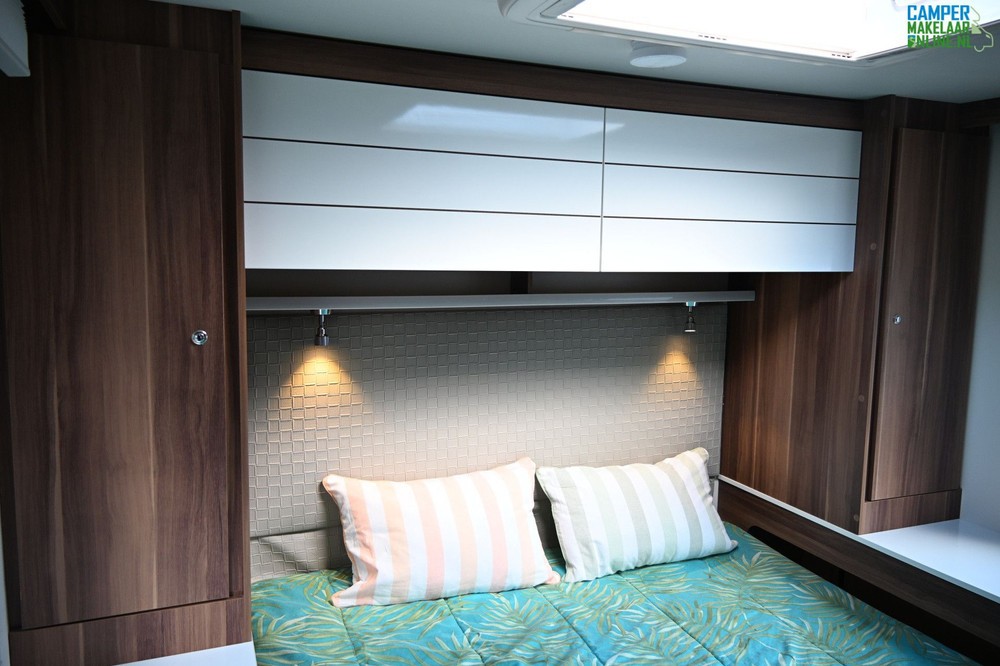Centraal bed (Queensbed): Het hoogtepunt van deze camper is het ruime tweepersoonsbed aan de achterzijde, dat aan beide kanten beloopbaar is.