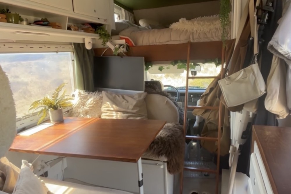 Met deze opstelling gebruik je zonder moeite apparatuur zoals een laptop, koffiemachine of blender. Deze off-grid camper is daardoor ideaal voor wie onderweg wil werken, reizen en wonen zonder afhankelijk te zijn van campings of vaste aansluitingen.