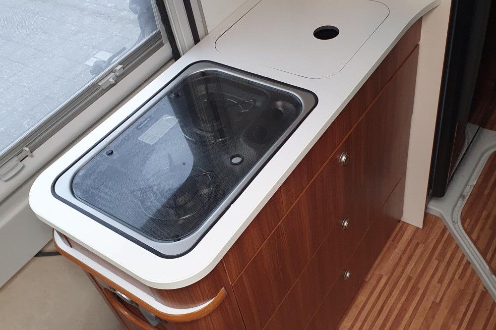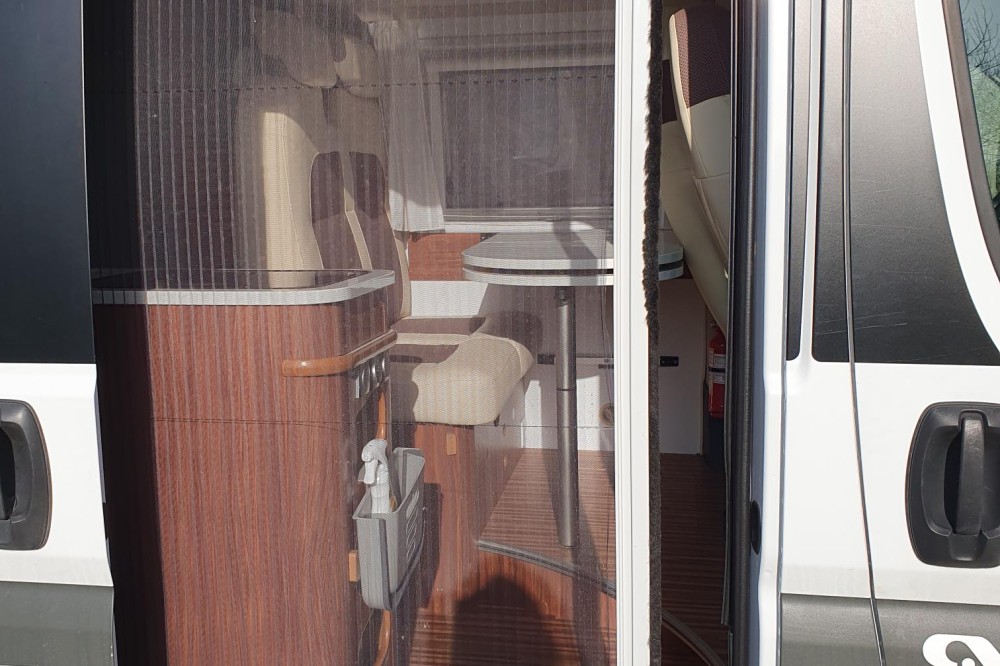 Dwarsbed 140x200. Grote luifel. Combo-rollosysteem. Plisse raambekleding in de cabine. Nog veel meer extra's.