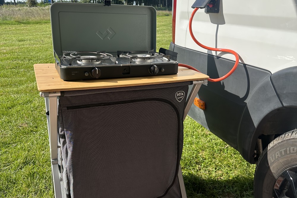 - Gasaansluiting binnen en buiten (geschikt voor o.a. Cadac 2-Cook)