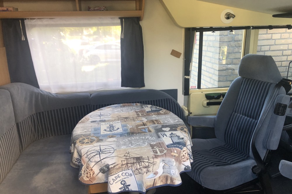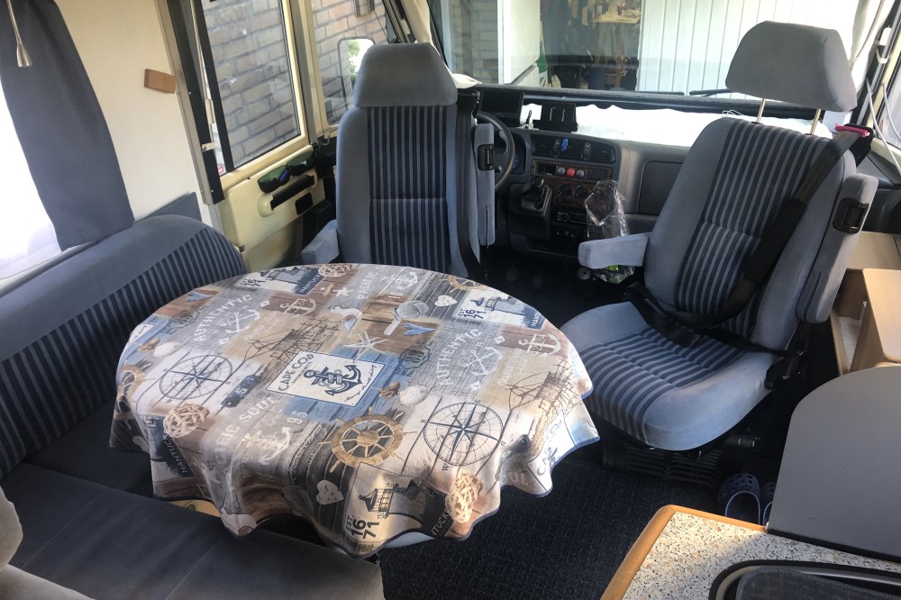 - Service, borden, glazen, bestek en overige inventaris blijven in de camper