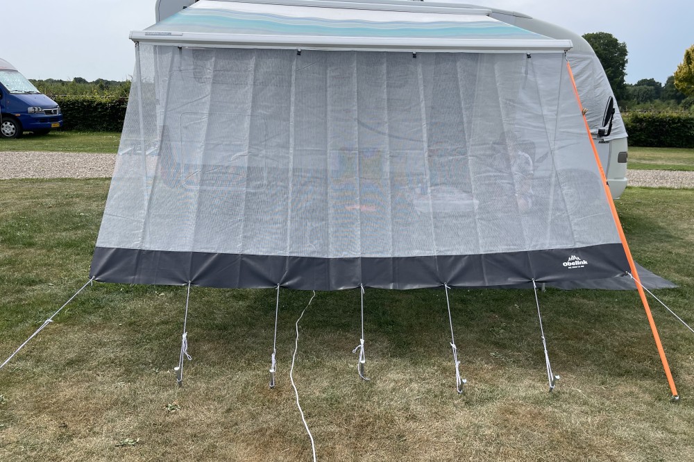 - Zijscherm voor de wind, aan beide kanten te gebruiken