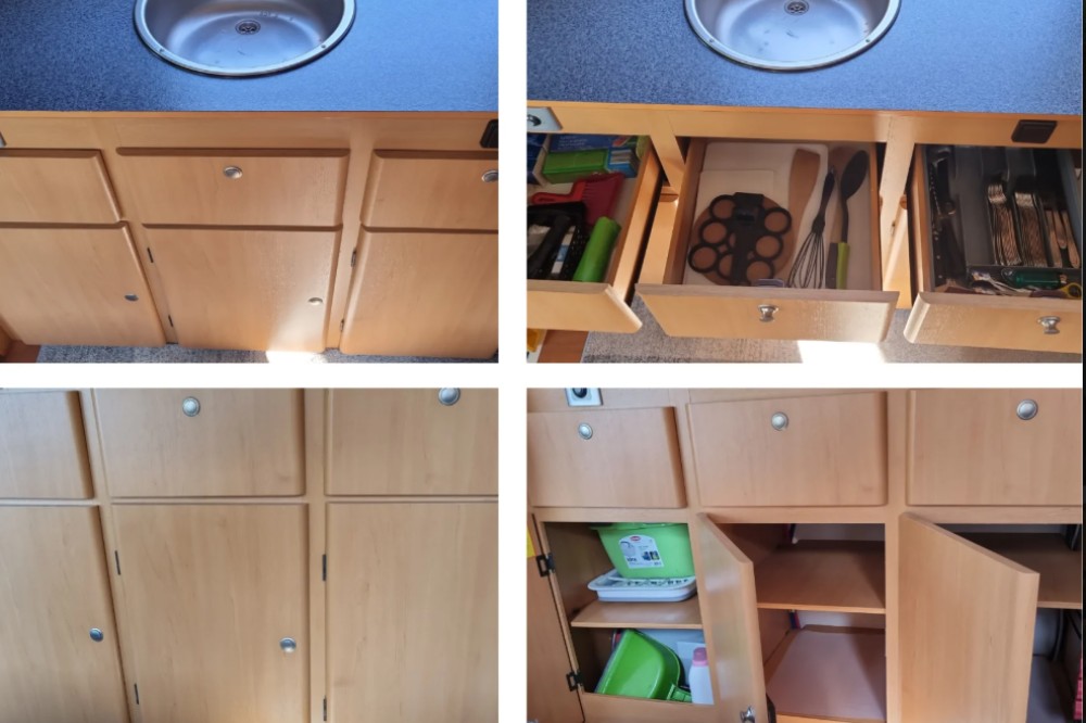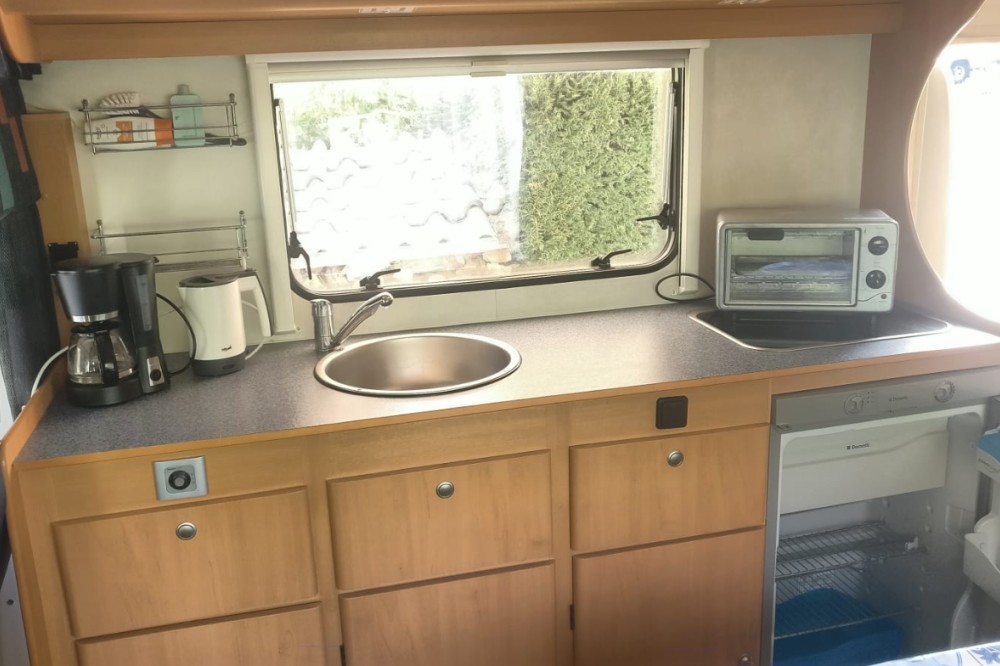 De camper beschikt over een grote keuken, perfect voor wie ook onderweg graag kookt. Alles wat je nodig hebt is aanwezig, waardoor je echt onafhankelijk kunt reizen.